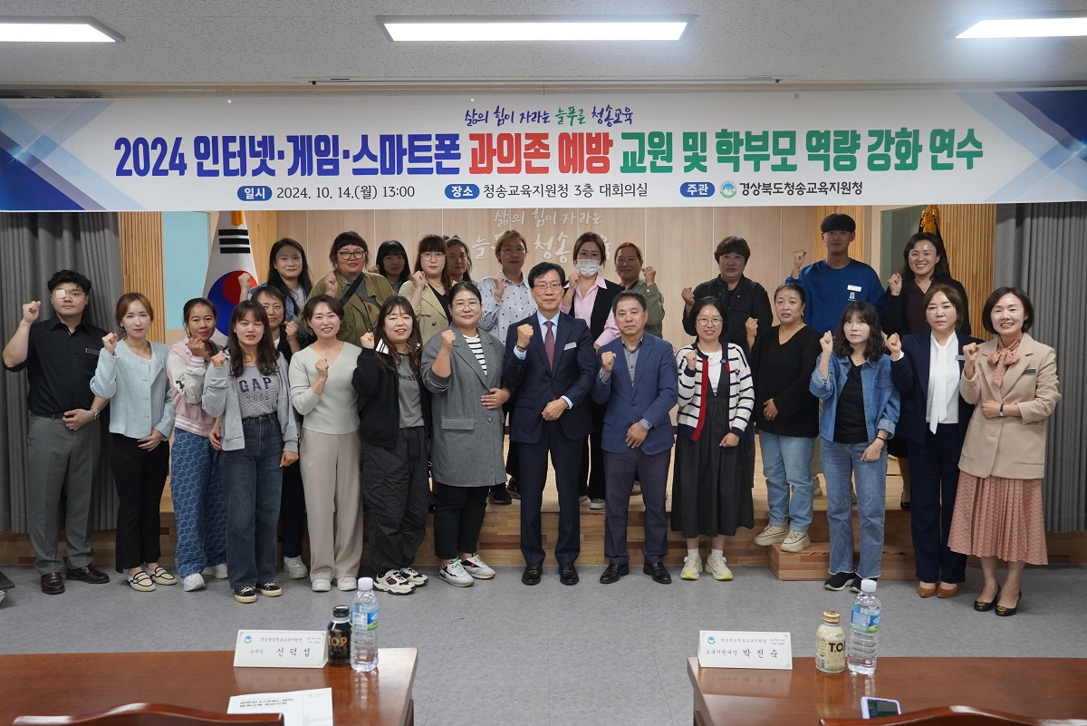 ▢ 청송교육지원청(교육장 신덕섭)은 10월 14일 청송교육지원청 대회의실에서 관내 초·중·고등학교 교원 및 학부모 50여명을 대상으로 ‘청소년기 인터넷·게임·스마트폰 과의존 예방’이라는 주제로 역량 강화 연수를 실시하였다.