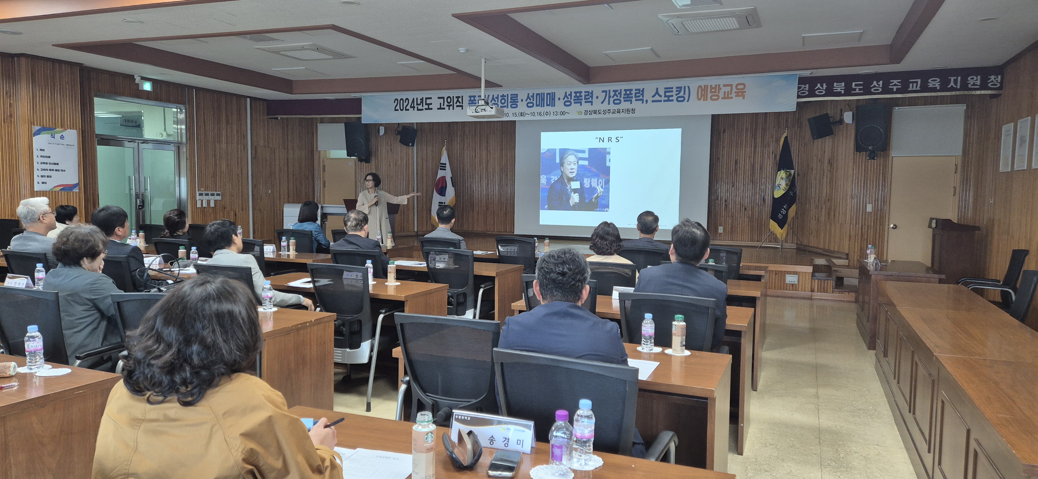 □ 경상북도성주교육지원청(교육장 정수권)은 2024년 10월 15일(화), 10월 16일(수) 양일간 성주교육지원청 대회의실에서 고위직 대상 성희롱·성폭력 별도 예방교육을 실시한다.