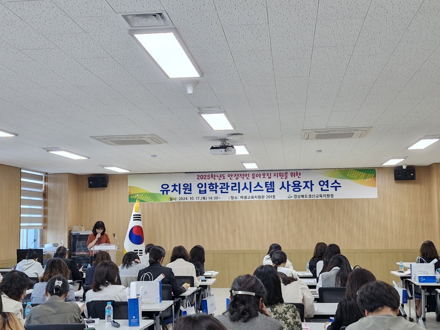 □ 경산교육지원청(교육장 박경화)은 10. 17.(목) 경산교육지원청 학생교육지원관 201호에서 관내 공·사립유치원 유치원 교원 60여명을 대상으로 2025학년도 유치원 입학관리시스템 연수를 실시하였다.