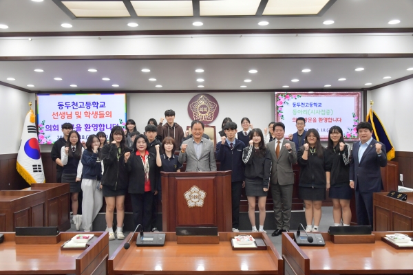 김승호 의장은 "동두천고 학생들의 방문을 진심으로 환영하며 이번 경험을 통해 의회민주주의와 지방자치의 중요성에 대한 인식이 깊어지길 바란다"며 "앞으로도 청소년들에게 실질적인 배움의 기회를 제공하기 위한 다양한 프로그램을 계속해서 마련할 것"이라고 밝혔다.