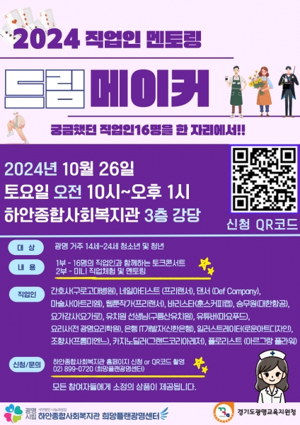 광명시 희망플랜광명센터 청소년·청년을 위한 전문 직업인 멘토링 ‘드림메이커’ 개최