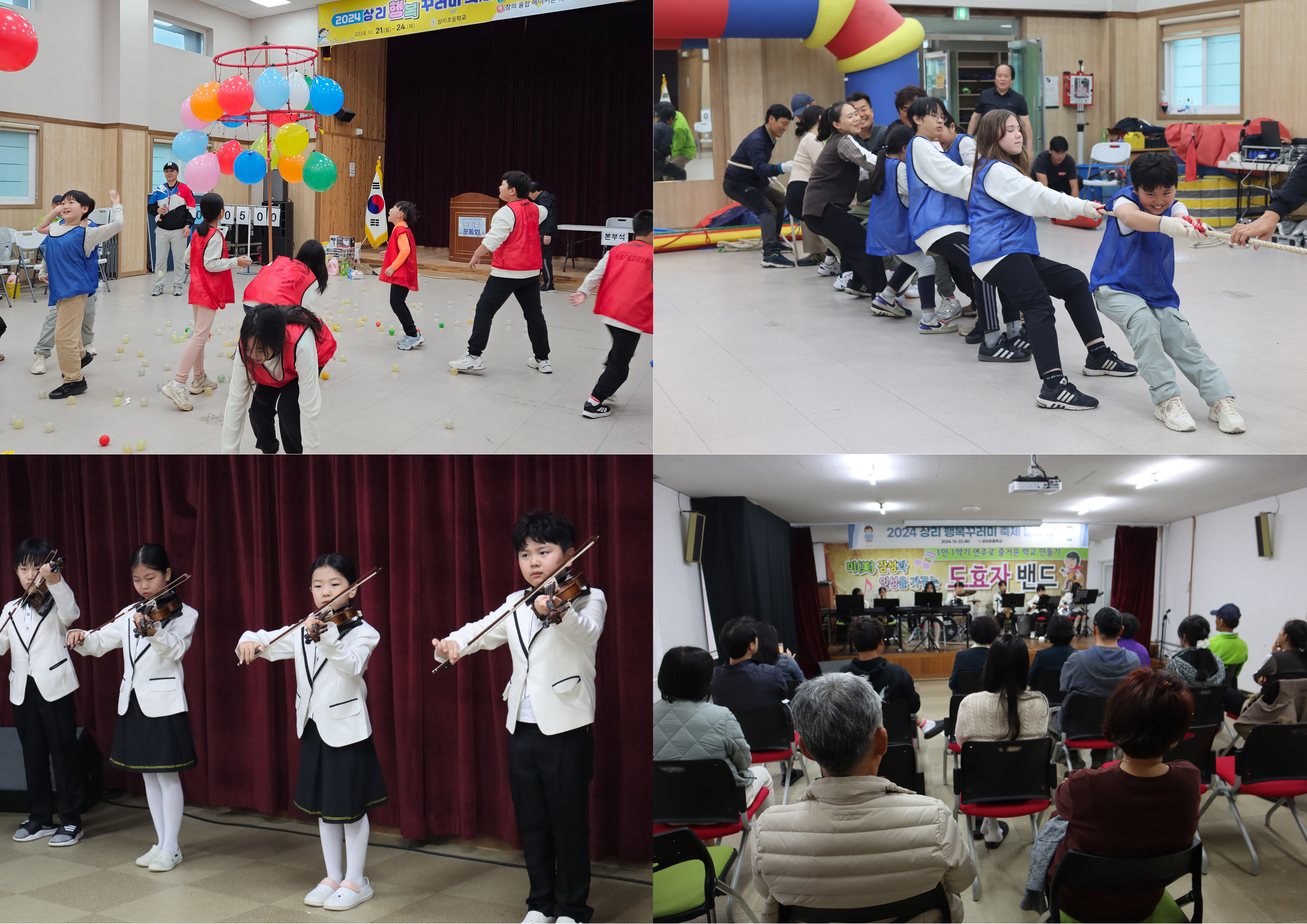 비로 인해 운동회는 효자면사무소의 협조로 효자면복지회관 대강당에서 진행되었으며, 실내에서도 학생들은 릴레이, 줄다리기, 공 굴리기 등 다양한 경기에 열정적으로 참여했다. 학부모와 교사들도 응원하며 학생들의 성장을 격려했다.