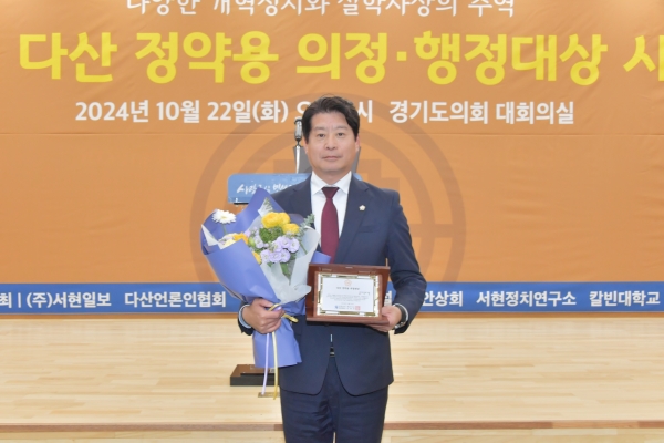 [금요저널] 동두천시의회 황주룡 부의장이 지난 22일 서현일보 주최로 경기도의회에서 열린 '제3회 다산 정약용 의정·행정대상 시상식'에서 의정 대상을 받는 영예를 안았다.