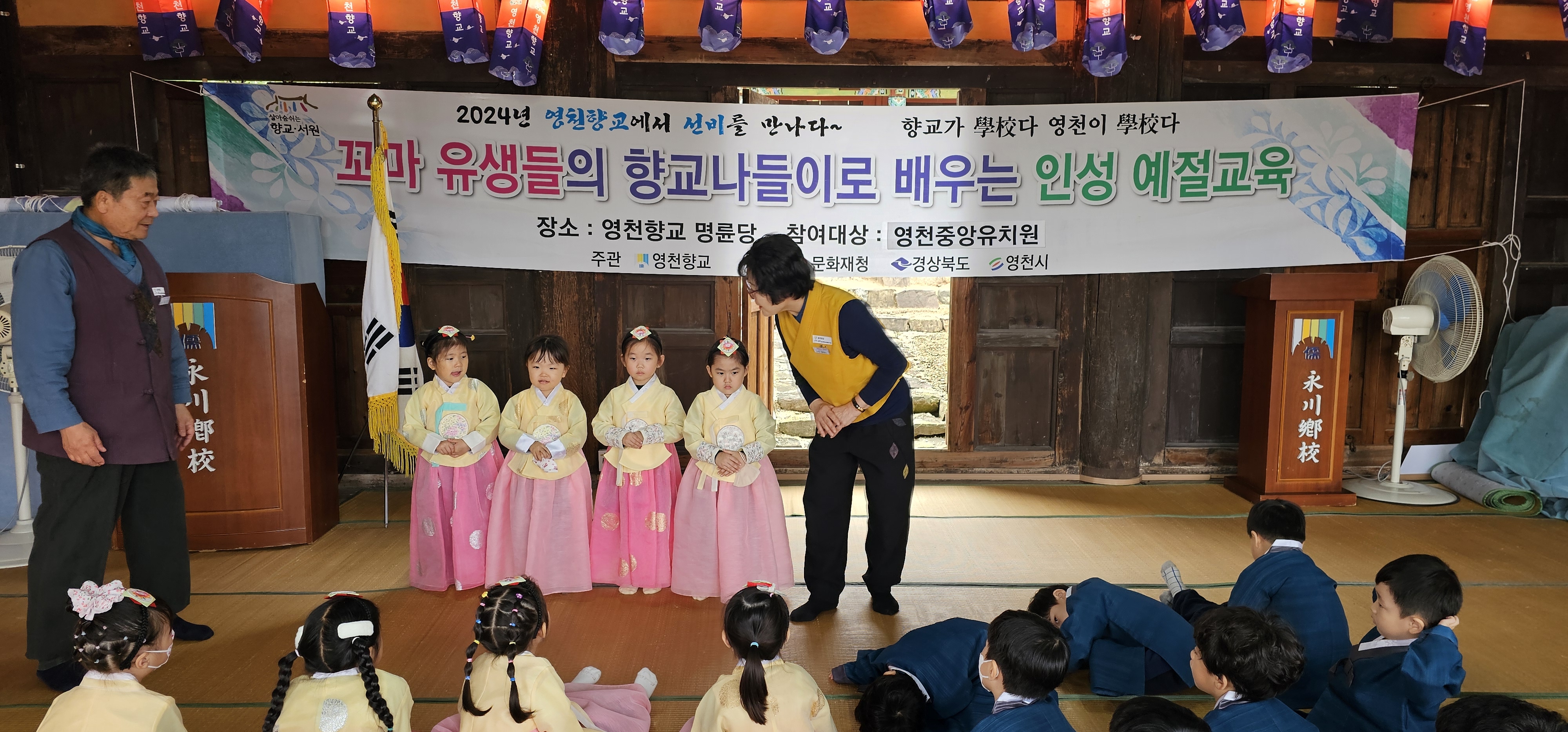 영천중앙유치원(원장 김은정) 유아들은 2024년 10월 18일부터 25일까지 반별로 향교 체험을 진행하였다. 이번 향교 체험은 전통문화에 대한 이해, 인성 교육, 자연과의 연결, 사회적 상호작용 및 창의력 증진을 통해 유아의 전인적 발전을 위해 실시되었다.