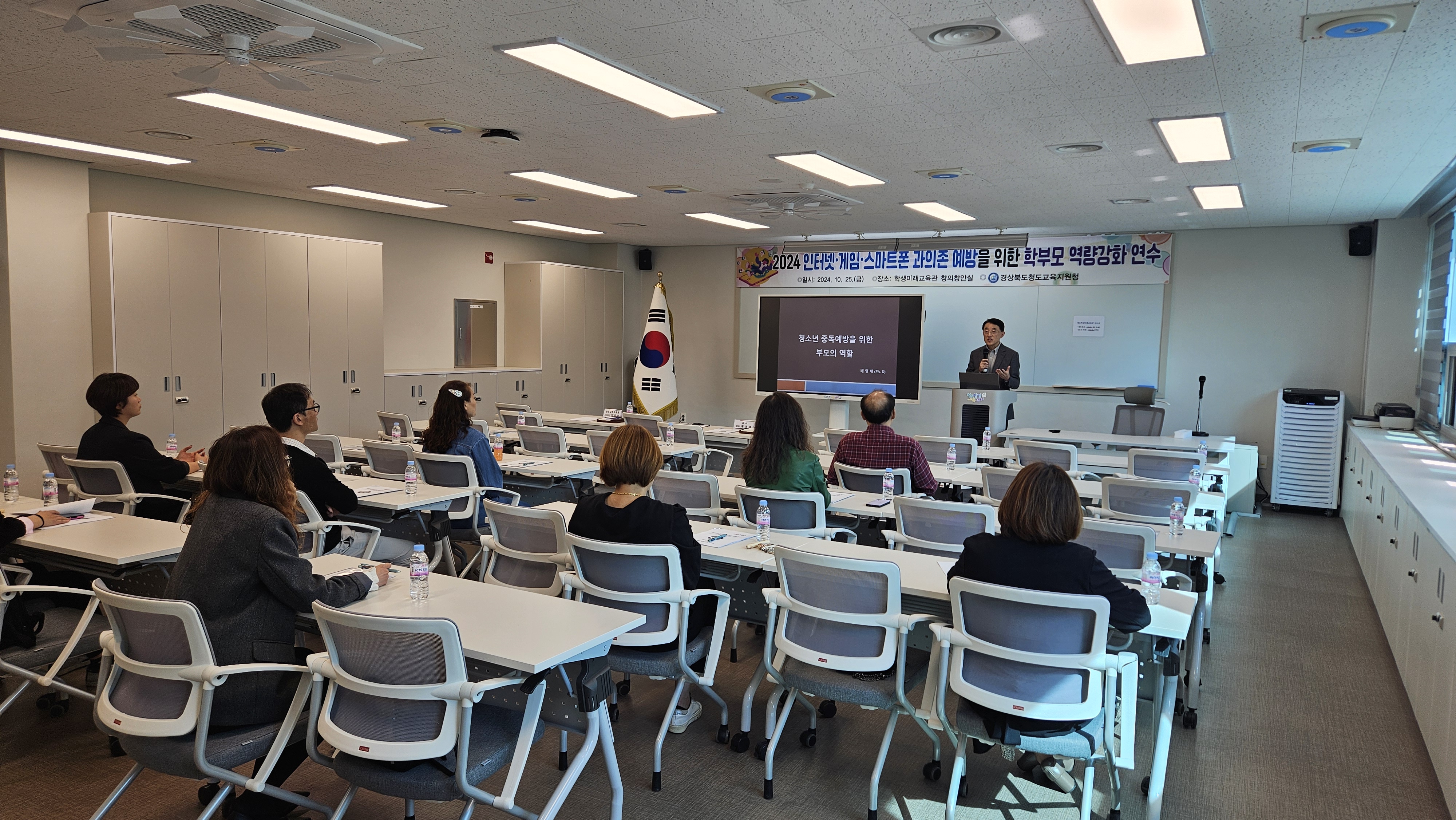 경상북도청도교육지원청(교육장 이시균)은 10월 25일(금) 오후1시 청도학생미래교육관 창의창안실에서 초·중·고등학교 정보 업무 담당 교사 및 학부모 40명을 대상으로 2024학년도 인터넷·게임·스마트폰 과의존 예방 교원 및 학부모 역량 강화 연수를 실시하였다.