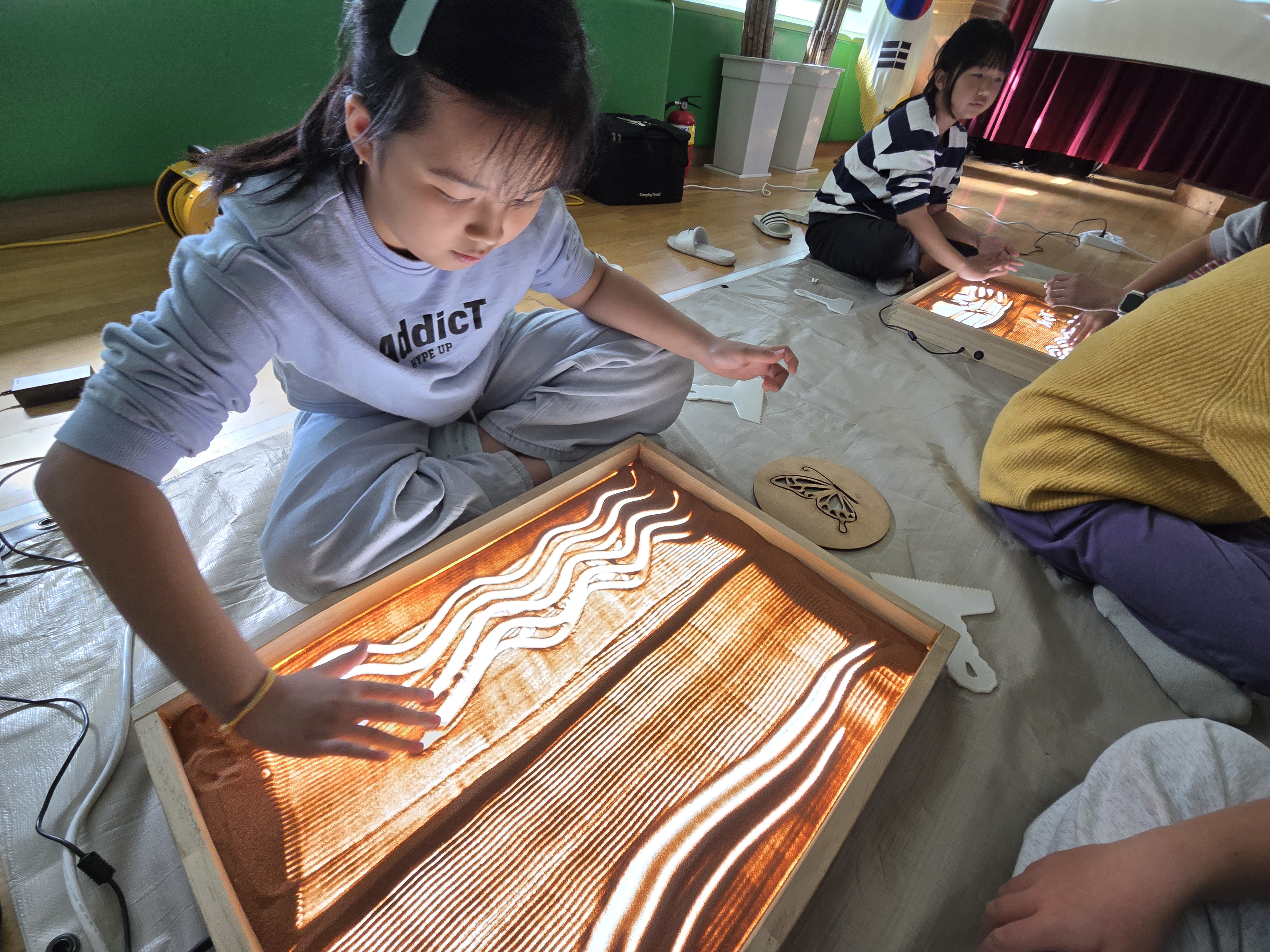 □ 구천초등학교의 6학년 손모 학생은 “책 속 이야기가 모래로 표현되는 게 너무 신기했고, 이야기를 읽는 것만큼 눈으로 보는 것도 재미있었다.”는 소감을 밝혔고, 4학년 김모 학생은 “샌드아트로 책 이야기를 표현하는 방법을 보고 나도 그림으로 내 이야기를 표현해 보고 싶다.”는 감상을 전했다.