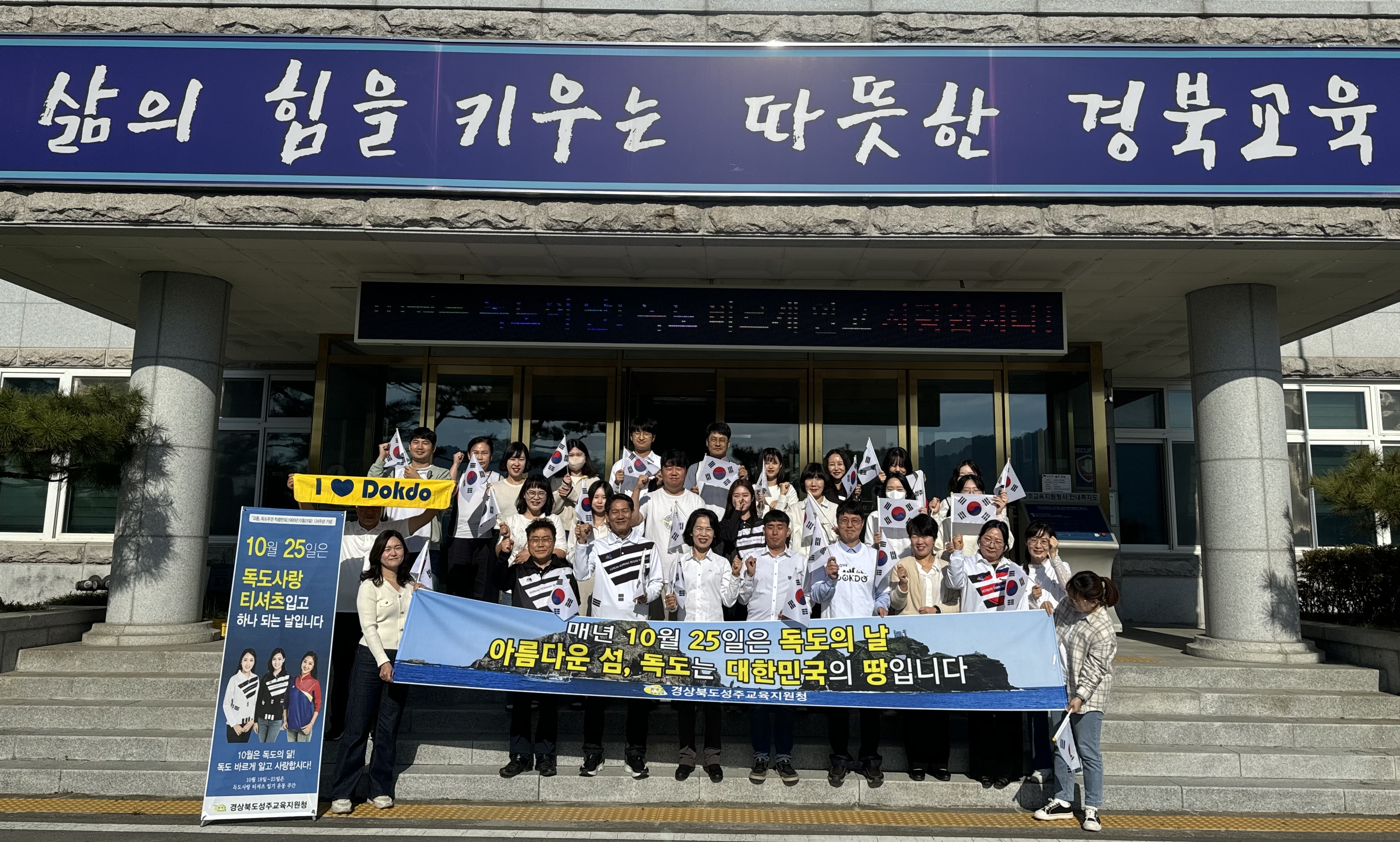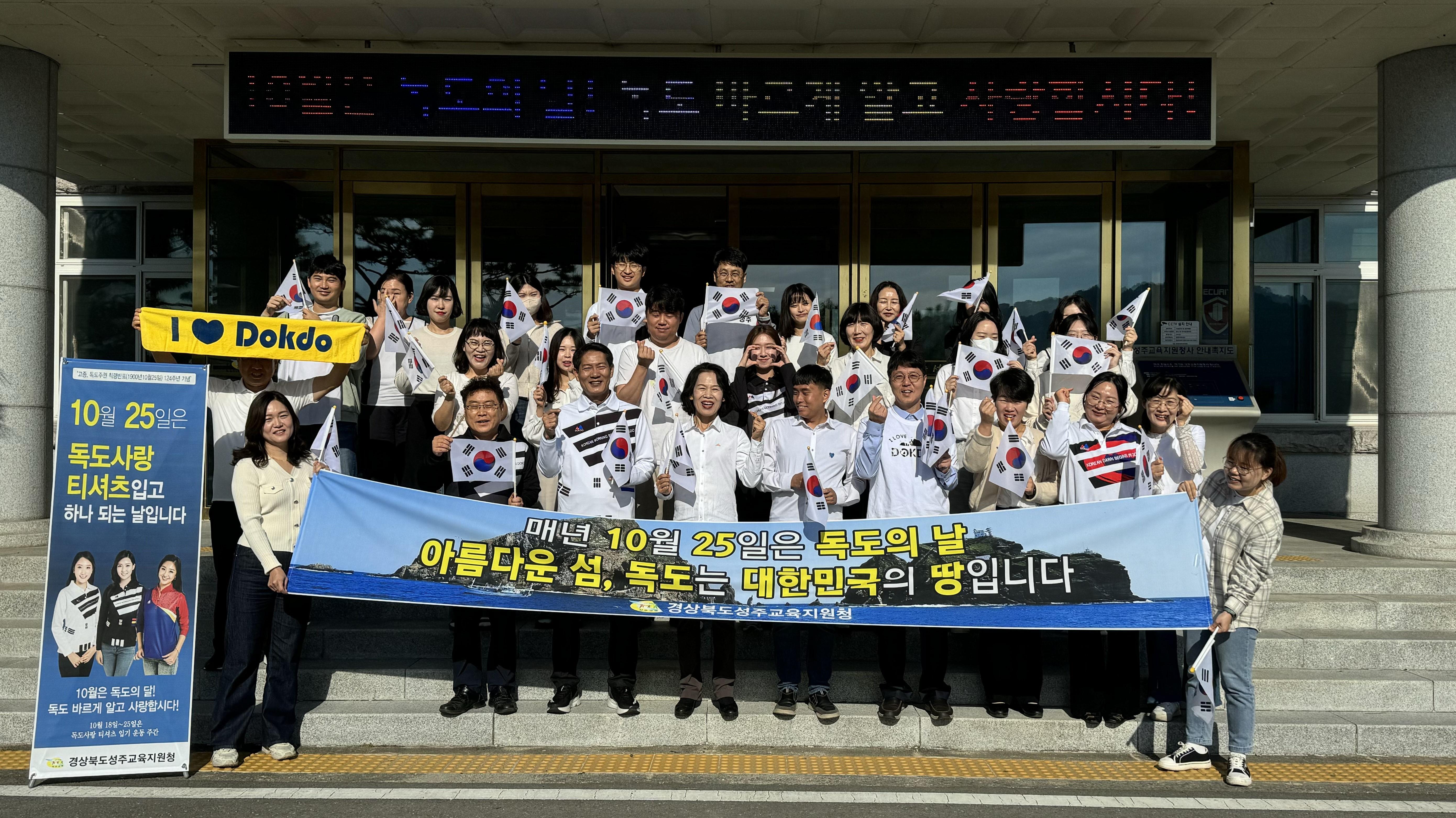 □ 경상북도 성주교육지원청(교육장 정수권)은 10월 25일(금) ‘독도의 날’을 맞아, 성주교육지원청 전직원 30여명이 참여하는 독도사랑 티셔츠 입기 캠페인을 실시하였다.