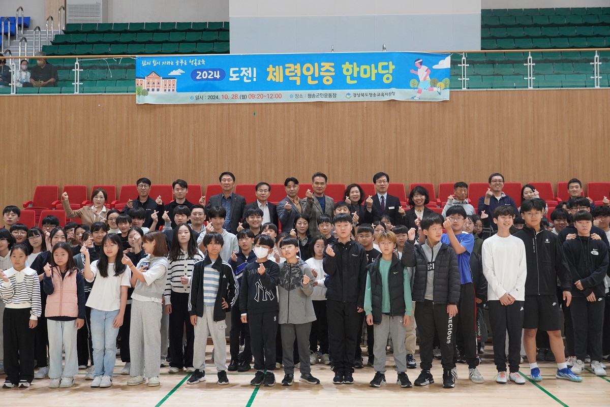 □ 경상북도청송교육지원청(교육장 신덕섭)은 10월 28일 청송군민운동장에서 관내 초·중·고등학교 학생과 교직원 총 150여 명이 참여한 가운데 “2024 도전! 체력인증 한마당”행사를 개최하였다.