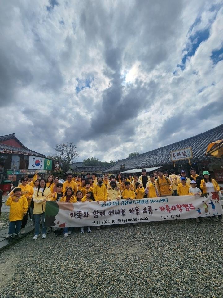 □ 경산교육지원청(교육장 박경화) Wee센터는 2024년 10월 25일(금) 경산 관내 초·중학생 및 학부모 60명을 대상으로 경산교육지원청 Wee센터 특색사업인 ‘가족과 함께 떠나는 가을 소풍-가족사랑캠프’ 프로그램을 진행하였다. 가족사랑캠프는 다양한 체험활동을 하며 가족 구성원 간 소통의 기회를 만들고 소중한 추억을 쌓을 수 있는 시간을 만들고자 실시되었다.