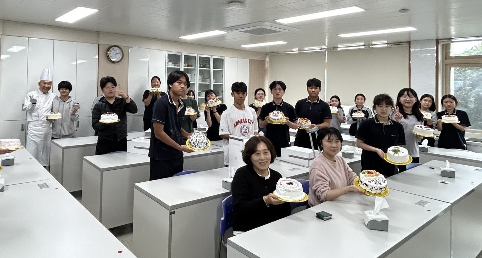 선배들의 후원으로 다정하게 정담을 나누며 케이크 시트 위에 생크림을 바르고 짤주머니로 크림 장식하는 법을 배웠다. 자신을 사랑하고 사랑의 표현을 자주 하자는 메시지로 레터링 문구를 작성한 후 생과일을 올려 마무리했다.