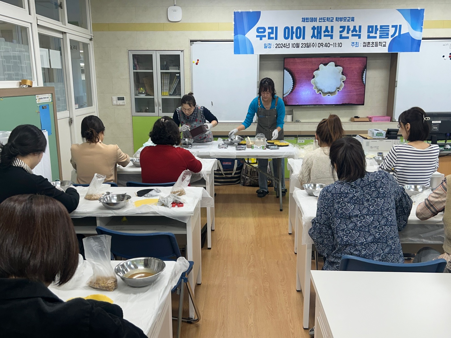 □ 점촌초등학교(교장 정인자)는 지난 10월 23일(수) 학부모를 대상으로 2024학년도 ‘우리 아이 채식 간식 만들기’교육을 진행하였다. 이번 교육은 건강한 식습관을 장려하고, 환경보호의 일환으로 채식 간식에 대한 이해를 돕기 위해 마련되었다.