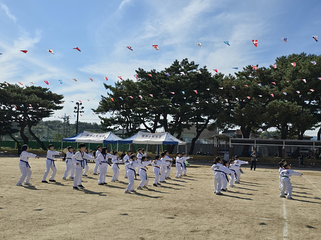 □ 특히 점심 식사 후 행사로 용문초등학교 방과후학교 태권도 부서에서 평소에 갈고닦은 실력을 뽐냈다. 막기, 찌르기, 발차기, 태극도 품새를 선보였고 학부모님이 송판을 잡아주고 자녀들이 격파하는 시범을 보여 큰 박수갈채를 받았다.