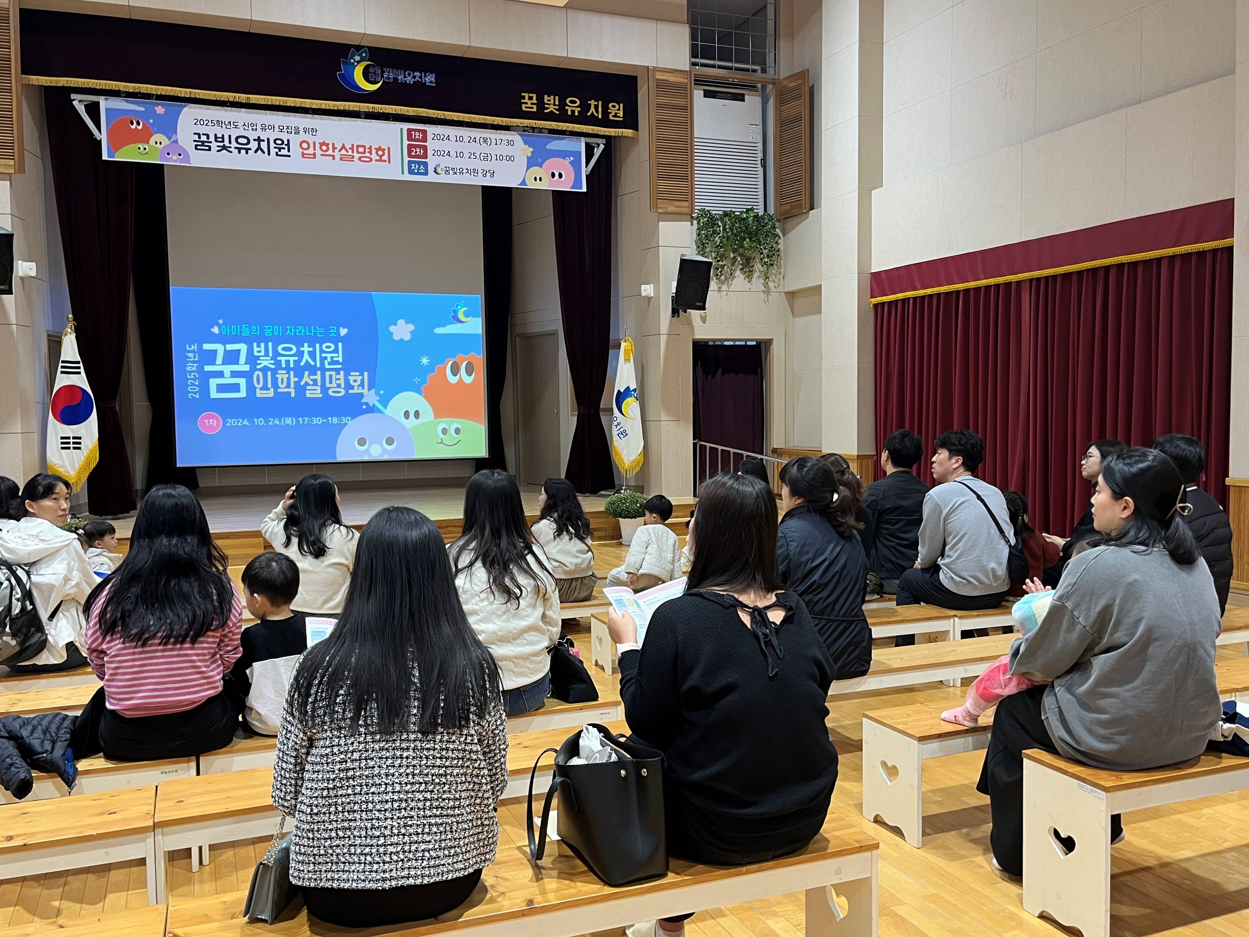 □ 꿈빛유치원(원장 김옥매)은 2025학년도 예비 신입생 보호자를 대상으로 유치원 입학 설명회를 유치원 강당에서 1차 10월 24일(목), 2차 10월 25일(금)에 실시하였다.