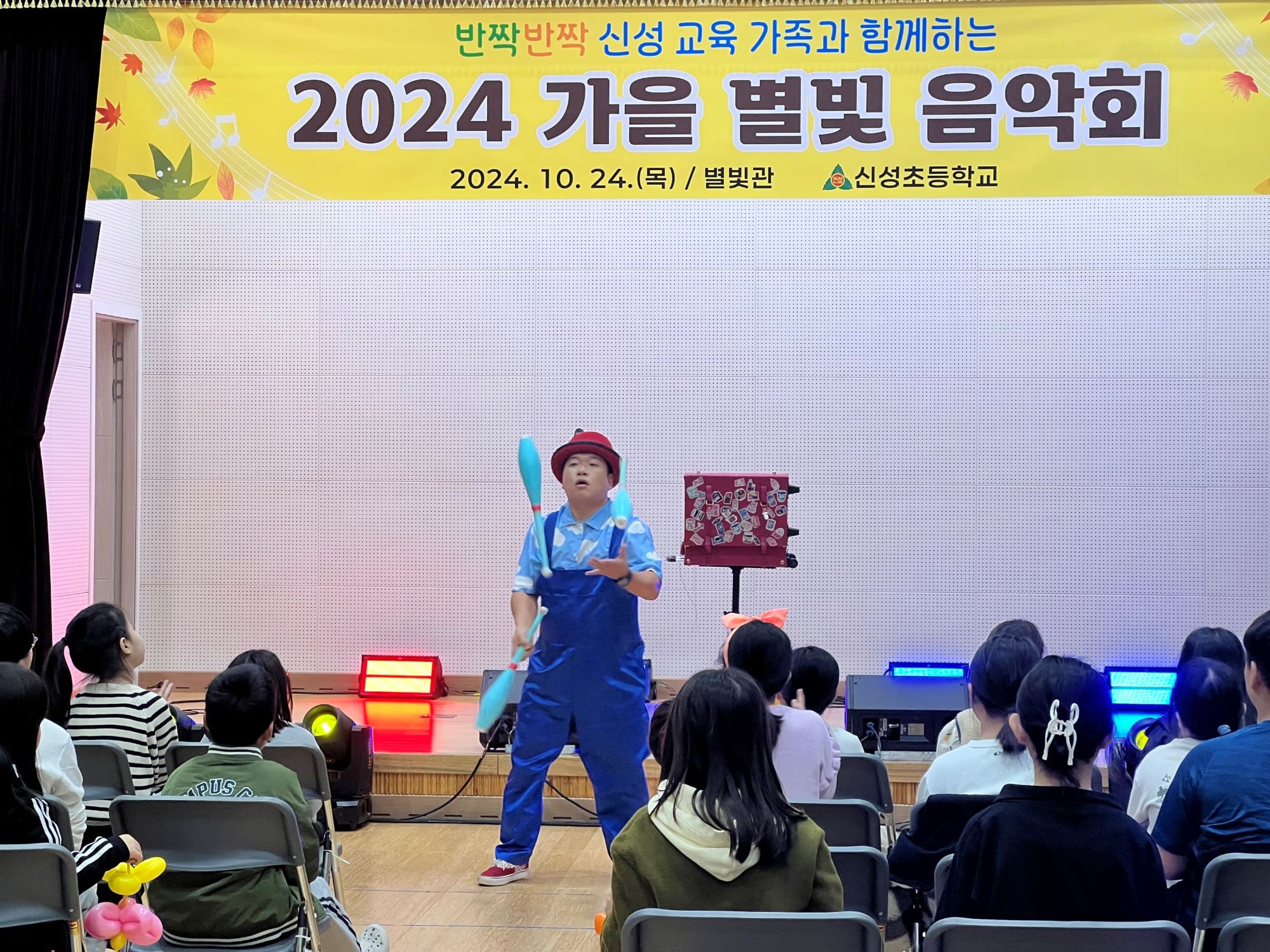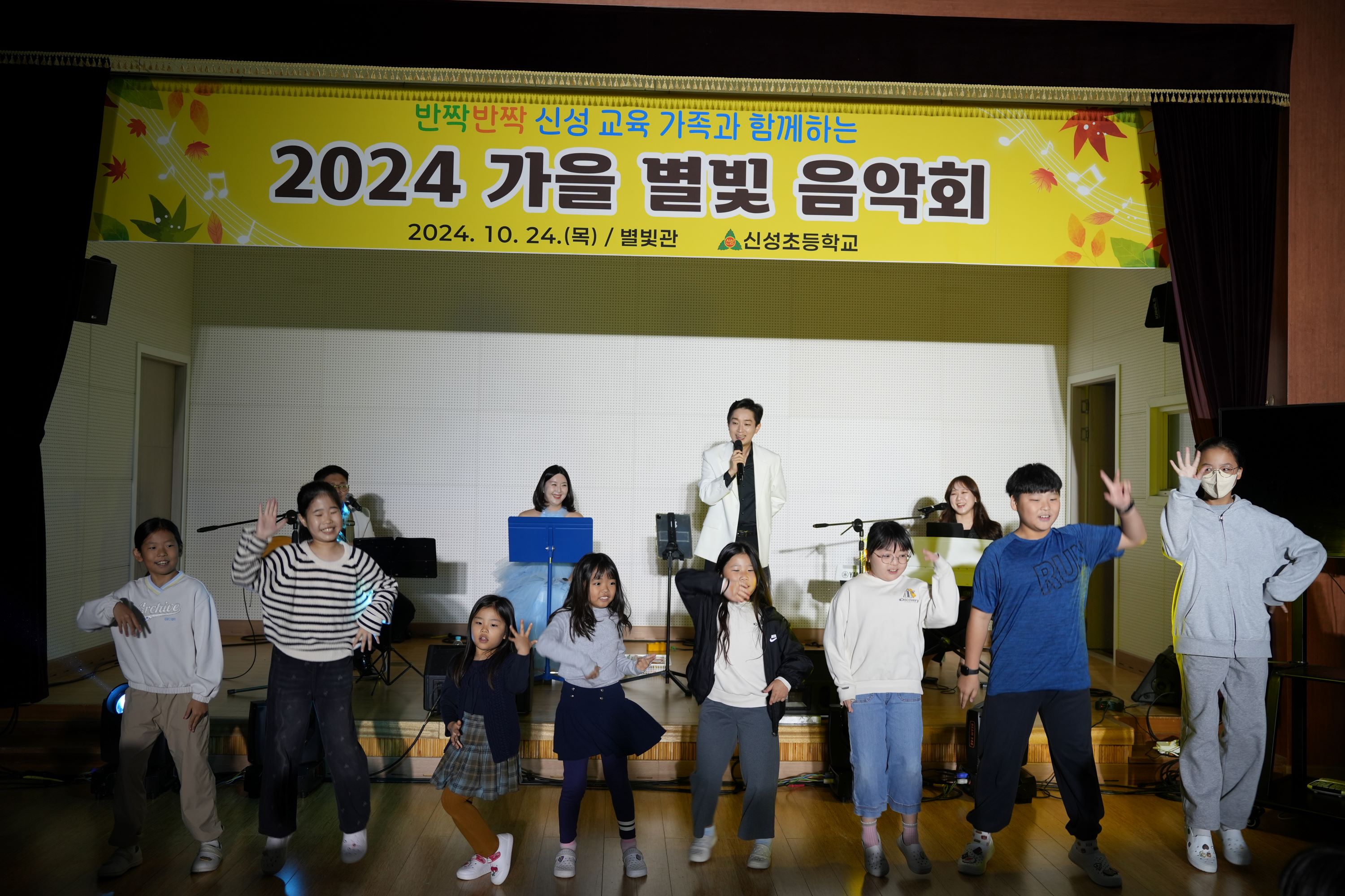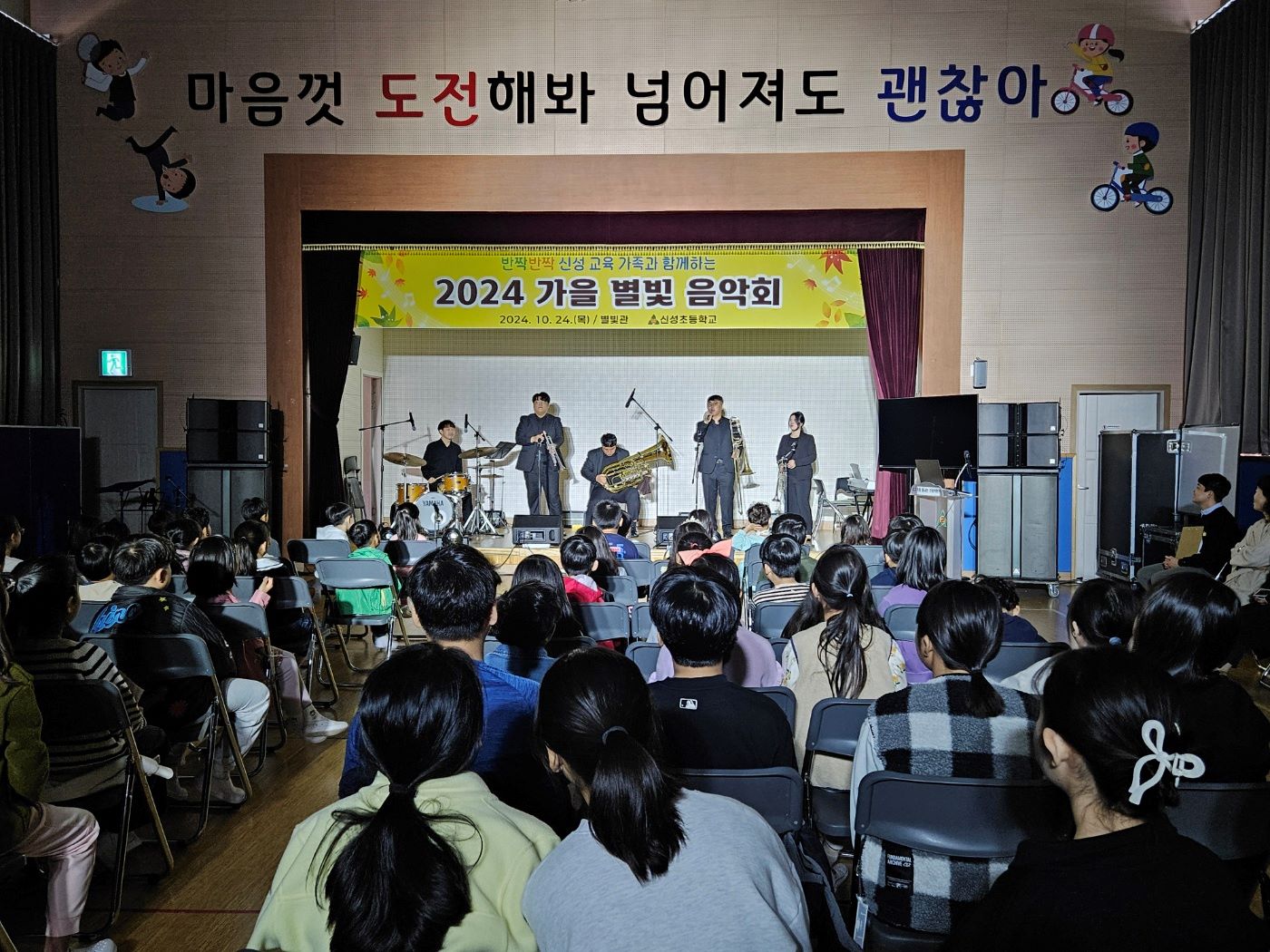□ 신성초등학교(교장 강신화)는 10월 24일(목), 별빛관에서 학생들의 문화이해 확장을 위해 지역의 다양한 음악 전문가를 초청하여 가을 별빛 음악회를 열었다. 본 행사는 학교예술교육 추가 지원 사업 일환으로 문화생활의 기회가 상대적으로 적은 학생들에게 음악회를 체험할 기회를 제공하고, 수확의 계절 가을을 맞아 마음을 힐링시켜주고자 마련되었다.