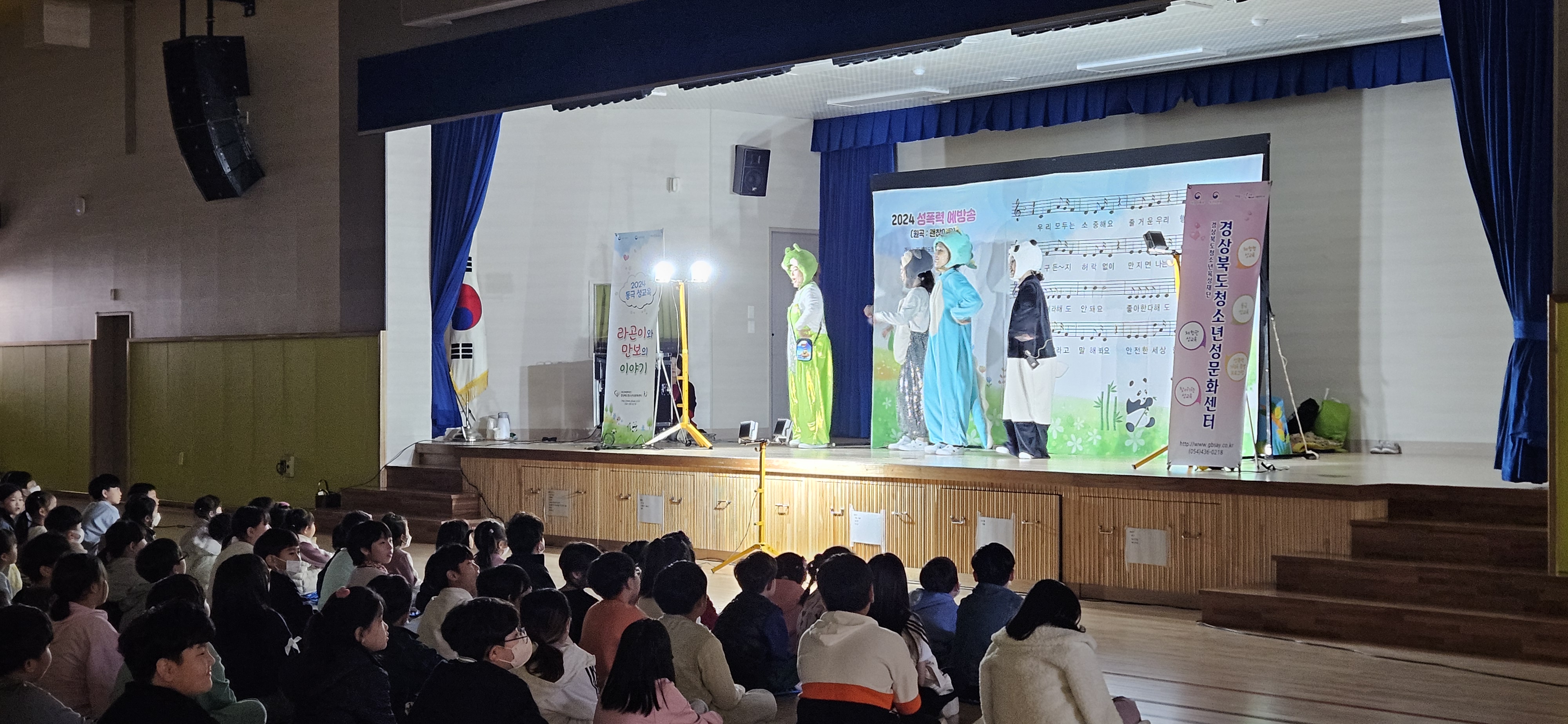 □ 경산초등학교(교장 추상엽)에서는 10월 24일(목) 학교 양성평등교육을 위한 동극공연을 관람하였다. 이번 공연은 경상북도 청소년 성문화센터 전문강사로 구성된 공연팀을 학교로 초청하여 실시하였다.