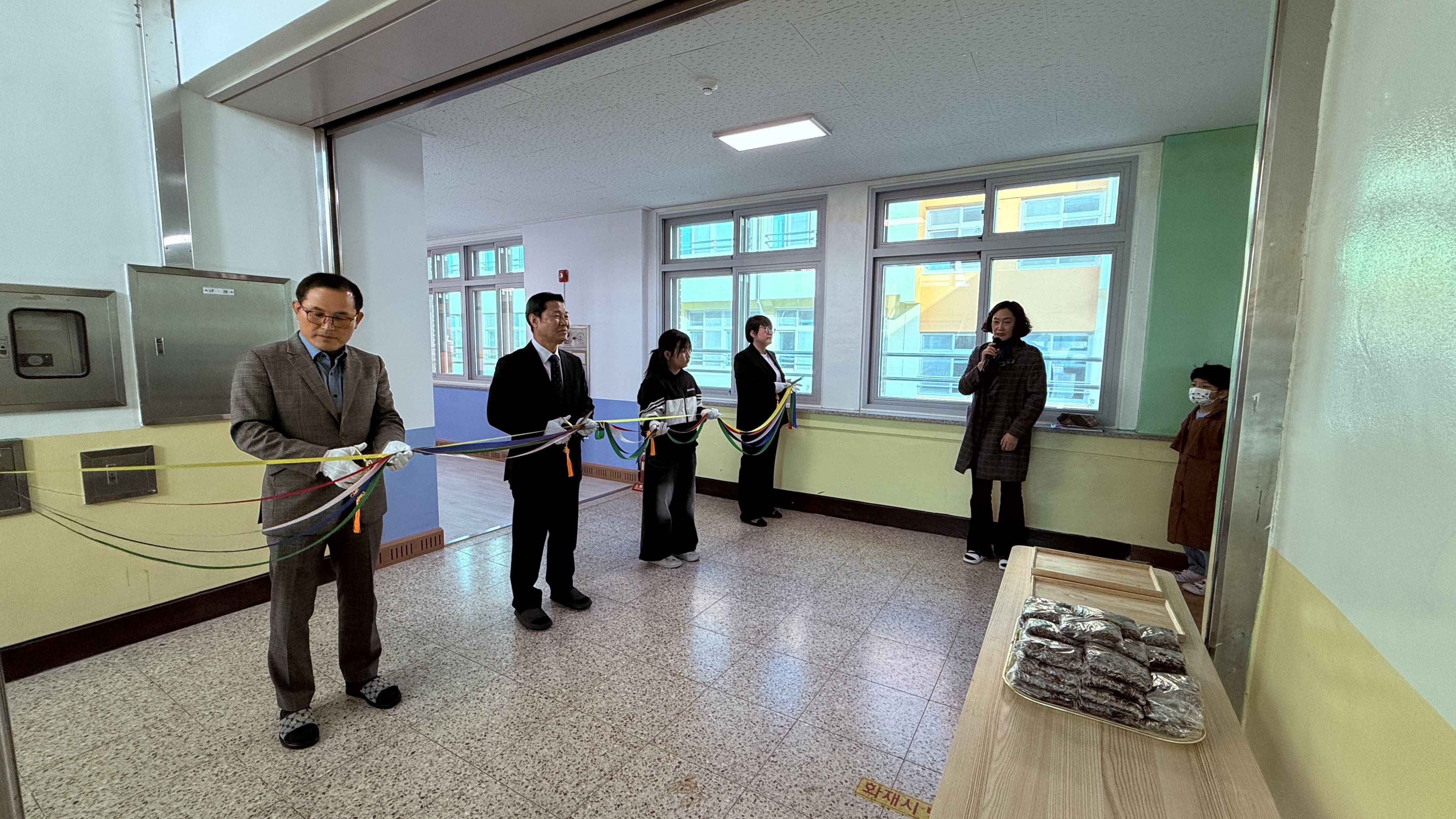 ■ 부림초등학교(교장 박진서)는 10월 25일(금) 경상북도교육청 놀이중심 공간 재구조화 사업의 일환으로 완성된 놀이교실 ‘재미팡팡, 부림시네마, 북적북적, 새싹교실’을 운영을 위해 운영위원장, 학부모회장을 모셔 본교 학생회와 함께 컷팅식을 실시하였다.