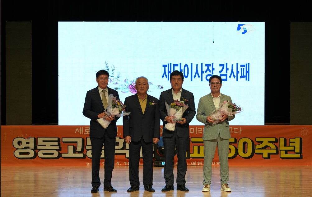 이날 영동고는 현재의 영동고가 있기까지 물심양면으로 학교를 도와준 단체와 개인에게 감사패를 수여하여 보는 이들에게 훈훈함을 안겼다. 총동창회, 황토장학회, 영천시청동문회, 세왕금속동문회, (재)울산 동문회, 농축협동문회, 팔사모, 육상부후원회 등의 단체에 학교장 감사패를 수여하였고, 지역에서 활발한 활동을 통해 학교에 큰 도움을 준 김O환(4회), 정O석(7회), 박O환(8회) 등 3명의 역대 동창회장에게 영동교육재단 이사장의 감사패를 수여했다. 감사패 전달 시, 참석한 모든 이들이 큰 박수와 환호로 축하 인사를 건네는 등 아름다운 장면이 연출되었다.