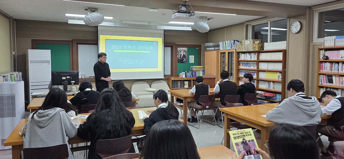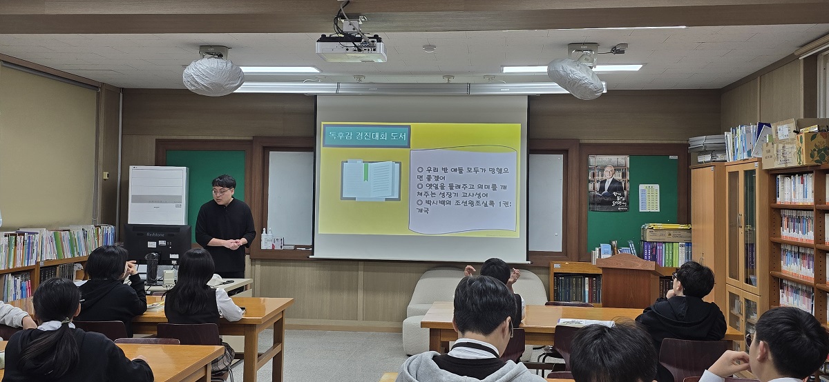전교생은 제한시간을 두고 독서퀴즈 시험을 치는 형식으로 실시되었다. 활용된 책은 ‘ 우리 반 애들 모두가 망했으면 좋겠어(이도해)’, ‘옛일을 들려주고 의미를 깨쳐주는 성장기 고사성어(윤병무)’, ‘박시백의 조선왕조실록 1 개국(박시백)’ 총 3권으로 하였으며 동점자의 경우 고난이도 문제를 더 많이 맞힌 순서로 순위를 가렸다.