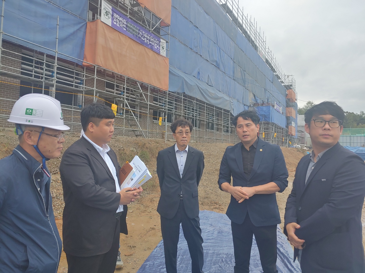 경상북도구미교육지원청(교육장 남성관)은 28일(월) 경상북도의회 교육위원, 교육지원청, 학교 관계자들과 산동중학교 교사 증축 현장을 방문하여 공사 진행 상황을 점검했다.