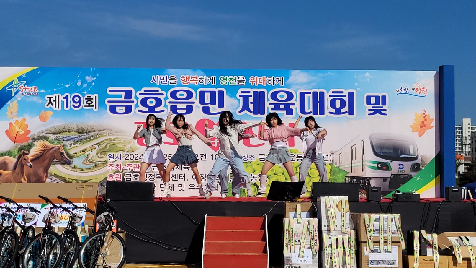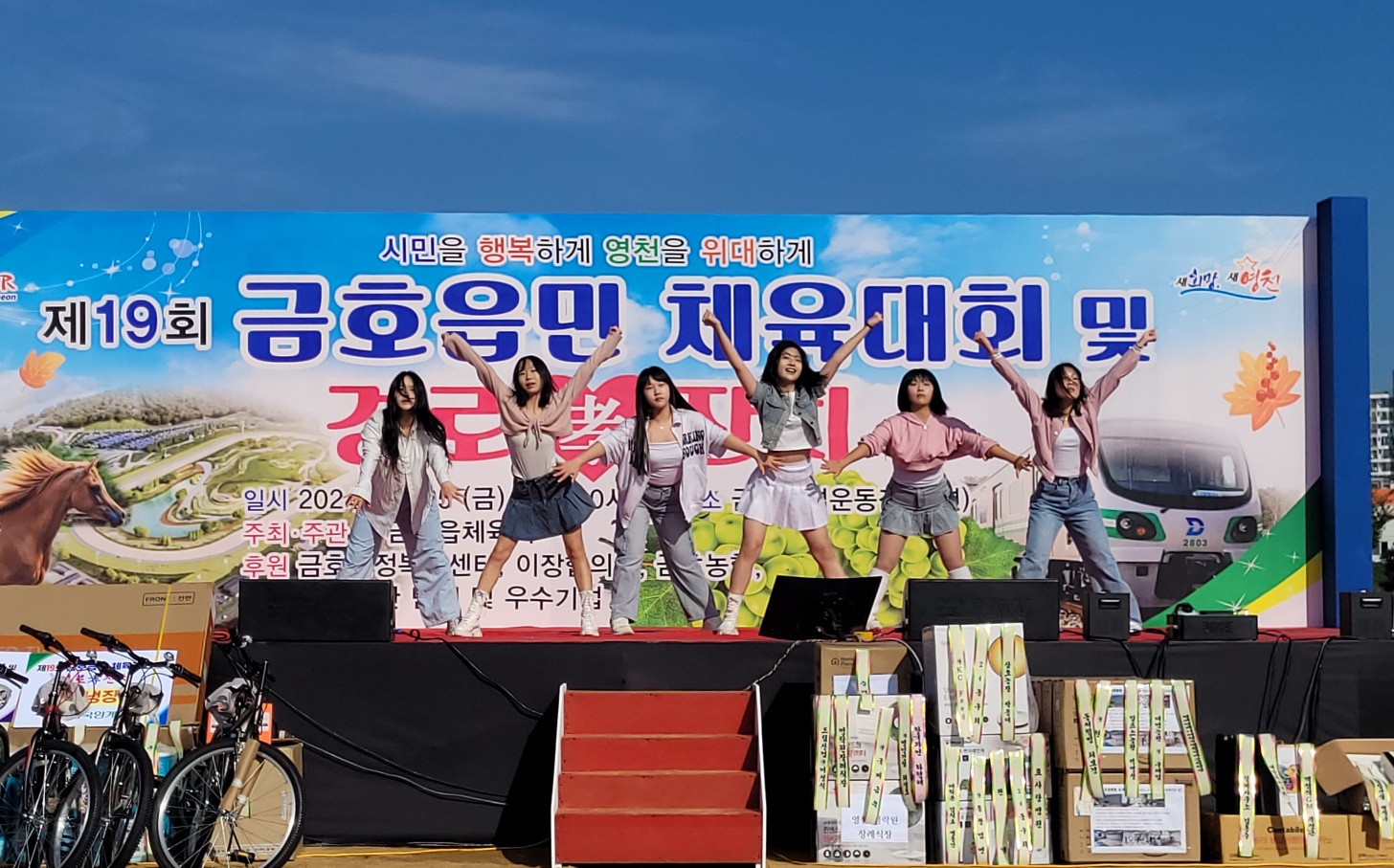 □ 포은고(교장 이채형) 댄스부 Eternity(이터니티)는 10월 25일(금) 금호읍민의 큰 축제인 ‘제19회 금호읍민 체육대회 및 경로孝잔치’에서 식전 축하공연을 하였다.