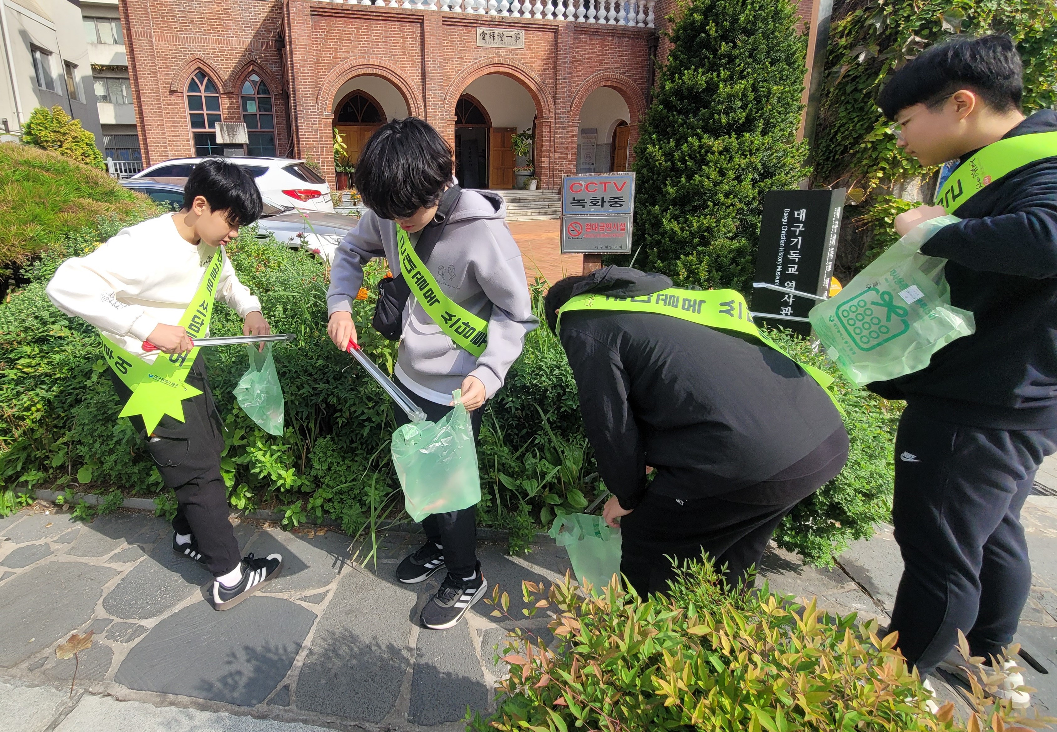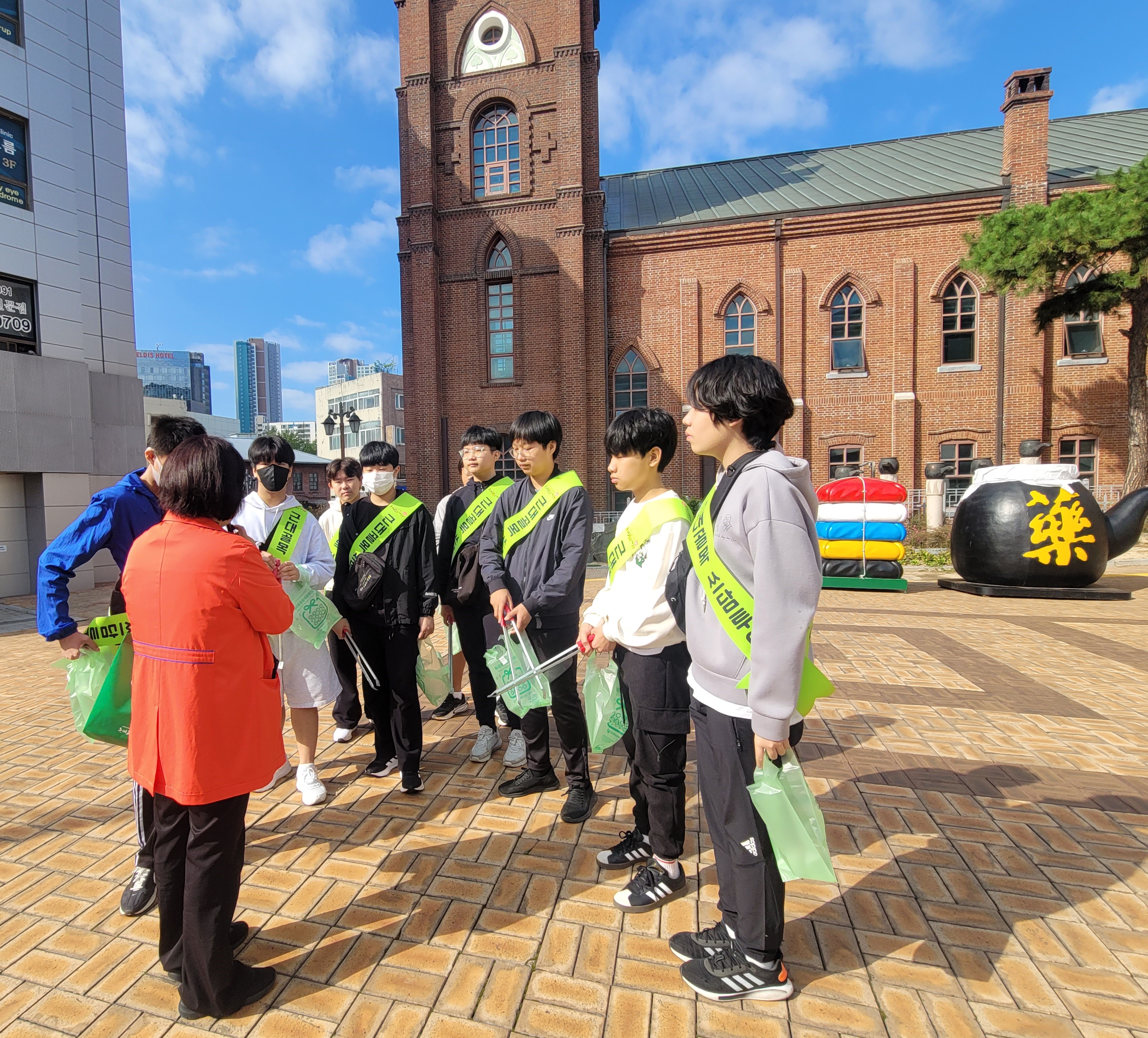 □ 2학년 10명의 자원봉사단은 3.1운동 만세길, 독립운동가 이상화·서상돈 고택, 약령시 한의약 박물관 등 대구 근대 문화거리를 전문가의 역사 해설을 들으면서 쓰레기를 담는 의미 있는 봉사를 하였다.