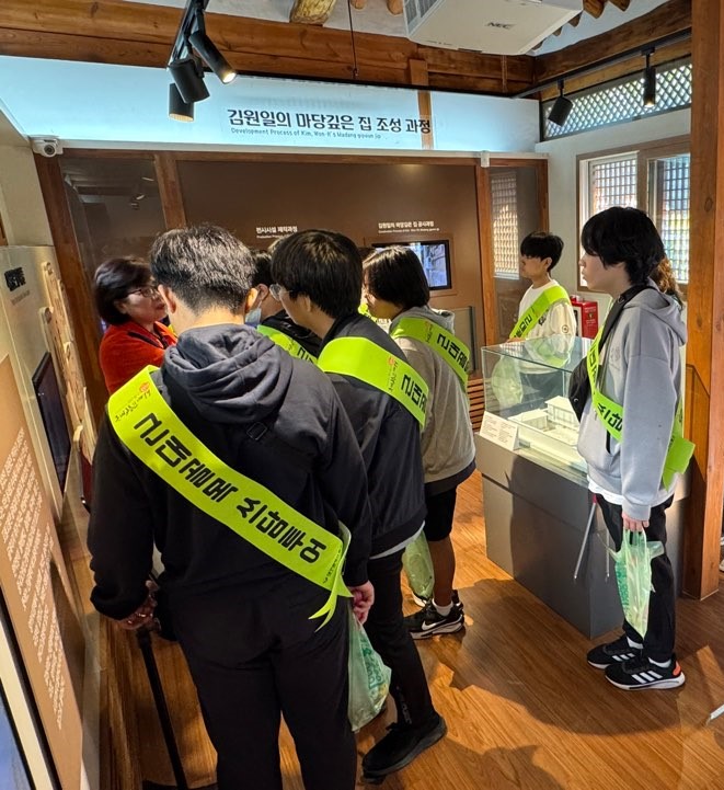 □ 2시간 동안 학생들은 우리나라 독립운동, 민족운동가, 근대건축물 등 근대 역사를 배우면서 5리터 봉투에 쓰레기가 가득 찰 정도로 열심히 환경봉사도 하였다.