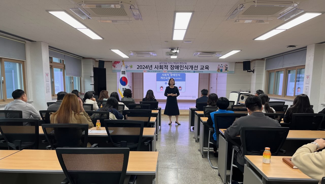 □ 영양교육지원청(교육장 김유희)은 10월 28일(월) 대회의실에서 영양교육지원청 및 소속기관 직원을 대상으로 사회적 장애인식개선 교육을 실시했다.