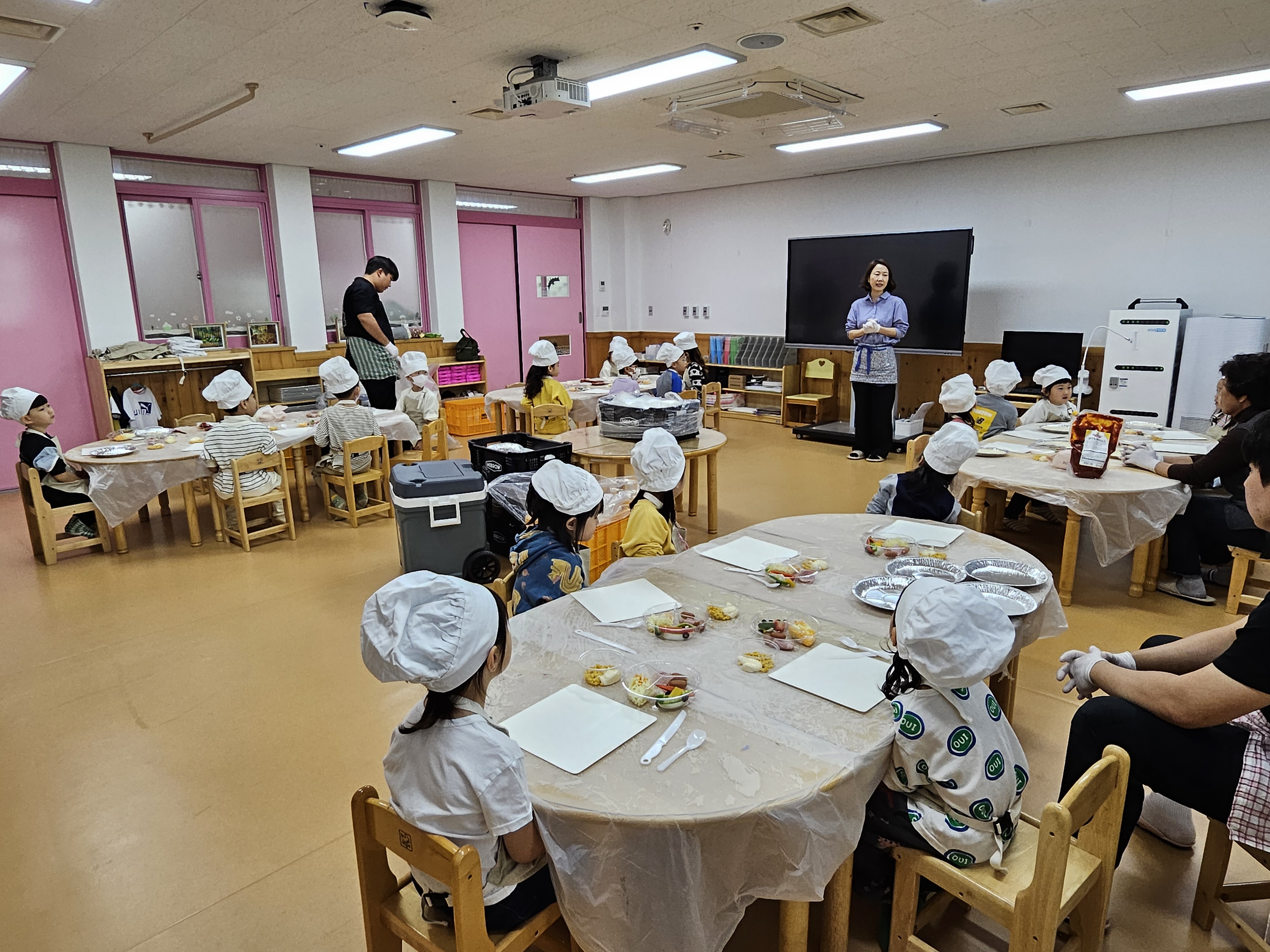 □ 꿈빛유치원(원장 김옥매)은 10월 25일(금)에 창의야놀자실에서 유아 118명(7학급)을 대상으로 피자 만들기 체험을 실시하였다.
