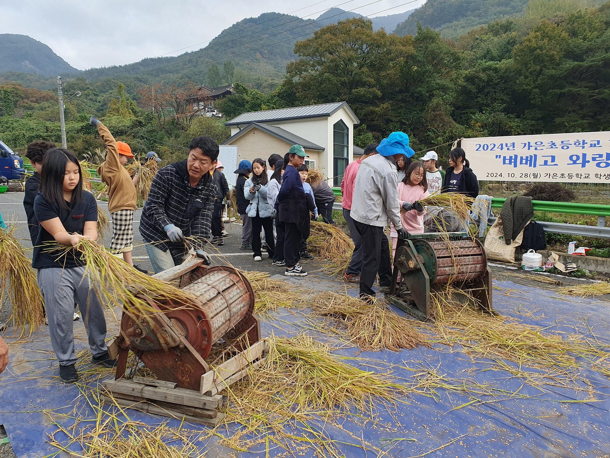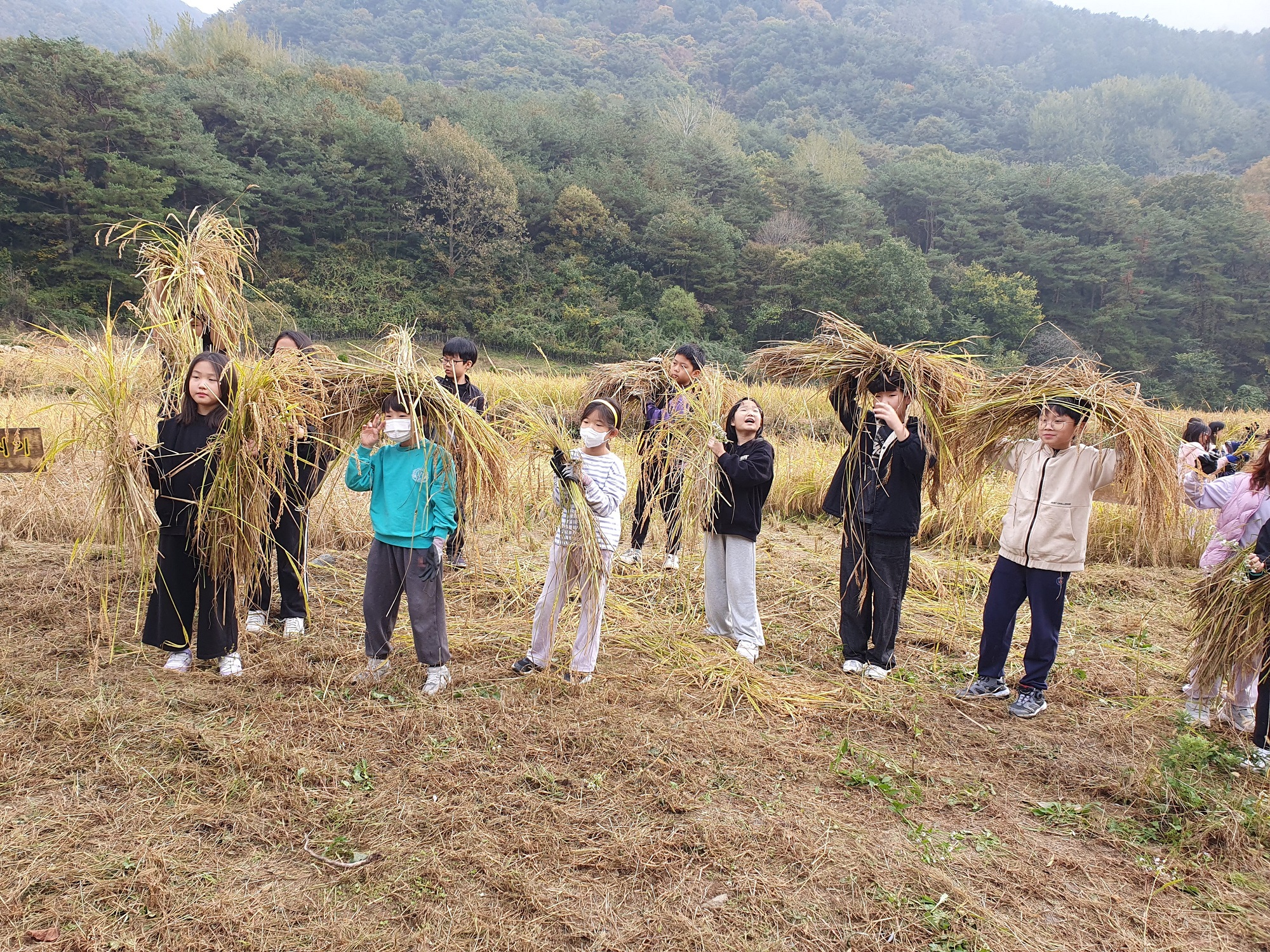 □ 가은초등학교(교장 최을희)는 10월 28일(월) 전교생을 대상으로 가은읍 원북리 일원 작목장에서 친환경 전통 방식의 벼베기 체험학습을 실시했다.