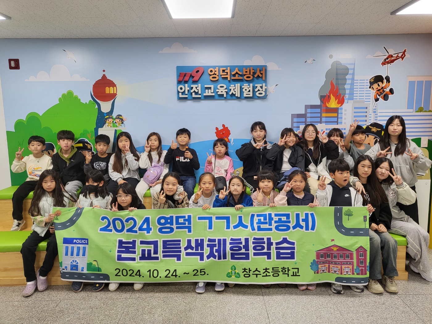 창수초등학교(교장 박봉재)는 2024.10.24.(목)~25.(금)에는 본교특색체험학습을 실시하였다. 현장체험학습 장소는 영덕군청, 영덕군의회, 영덕경찰서, 영덕소방서, 고래불야영장, 숲속미술학교(청하)를 방문하였다.