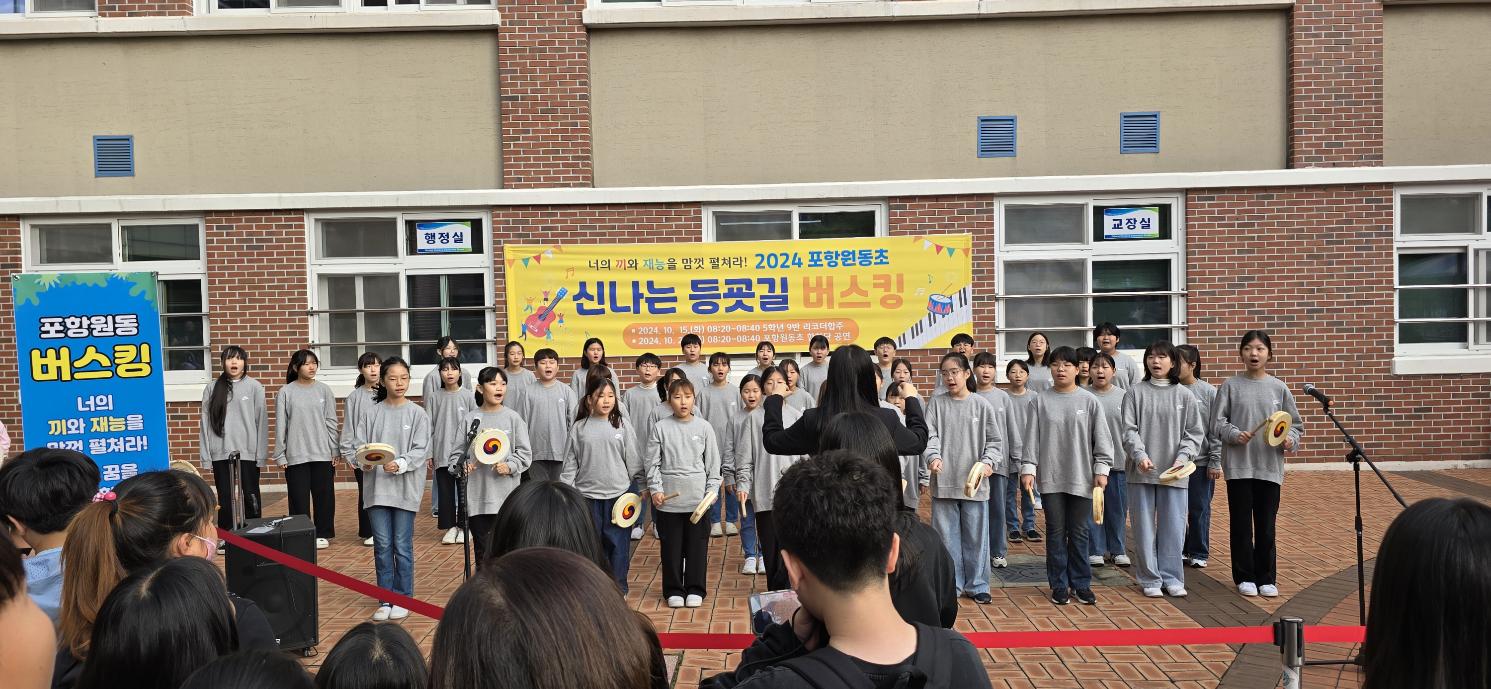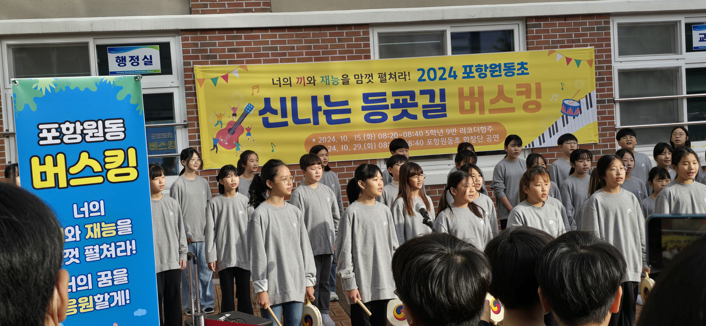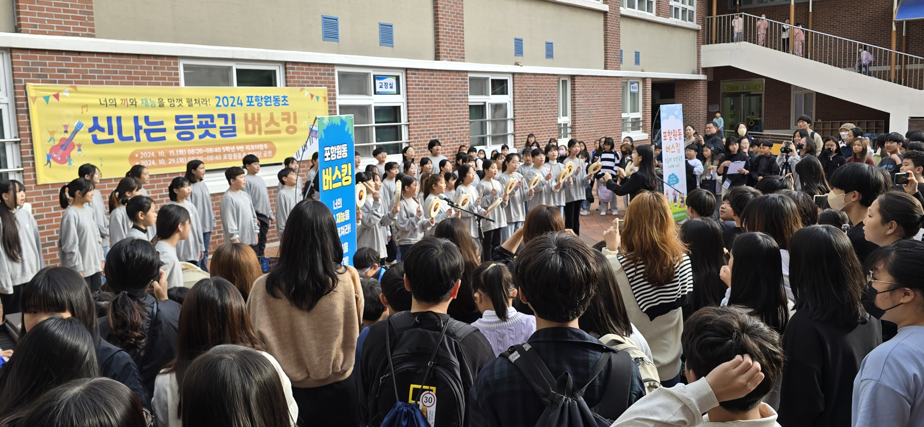 포항원동초(교장 손진수)는 지난 29일(화) 교내에서 학생, 학부모, 교직원 300여 명이 참석한 가운데‘2024 신나는 등굣길 버스킹’을 개최했다.