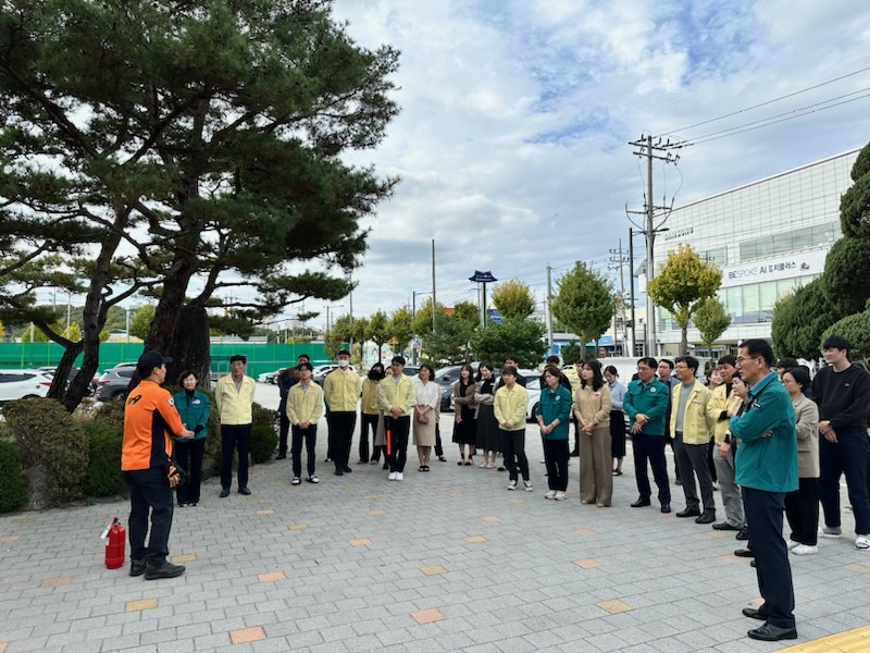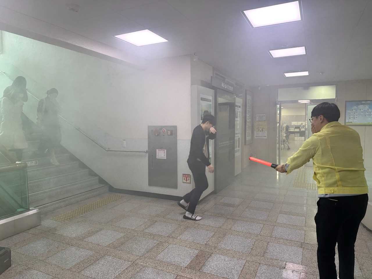 이번 훈련은 화재에 대한 경각심을 높이고 화재발생 시 대응 대비태세를 확립하기 위해, 청사 내 3층 소회의실 화재 상황을 가정해 화재신고 및 대피, 소화기 사용법, 옥내소화전 사용법 등의 순으로 진행했다.