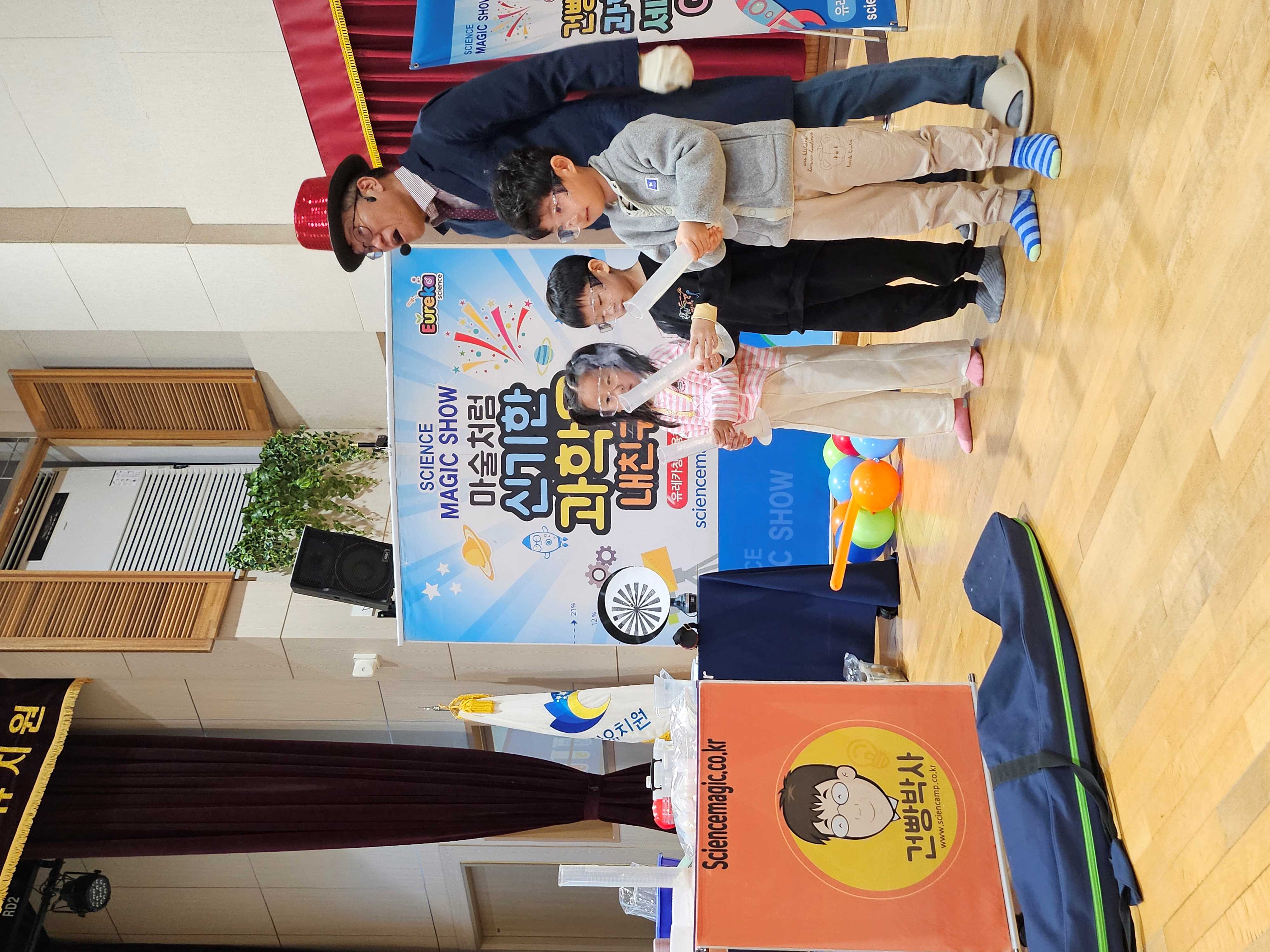 □ 꿈빛유치원(원장 김옥매)은 10월 29일(화)에 꿈빛유치원 강당에서 유아 118명(7학급)을 대상으로 사이언스 매직쇼 체험을 진행하였다.
