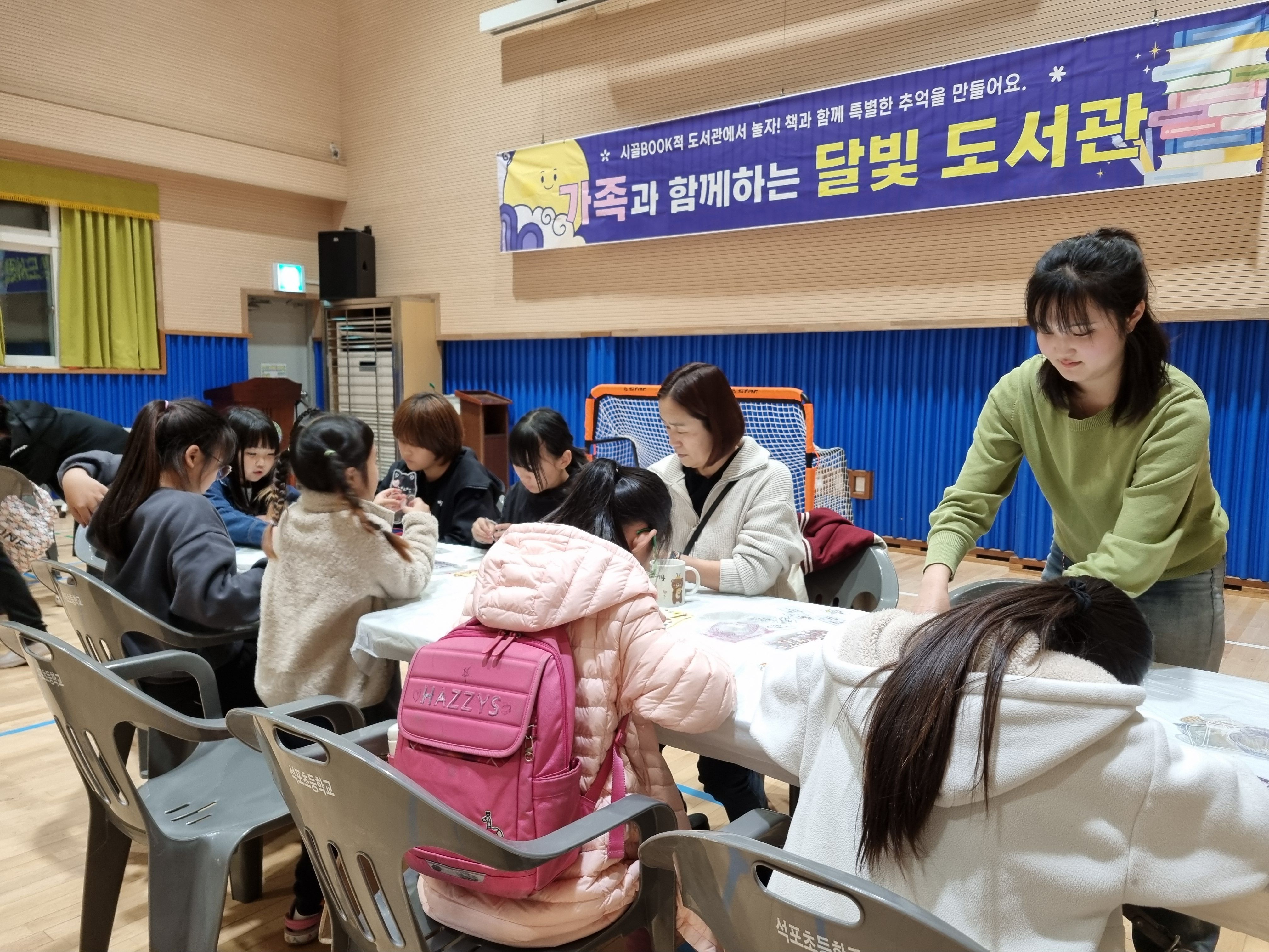석포초등학교(교장 이동형)는 10월 29일(화) 교내 도서관 및 체육관에서‘가족과 함께하는 달빛도서관 축제’를 개최했다. 올해로 2회째를 맞이하는 이번 축제에서는 ‘시끌BOOK적 도서관에서 놀아요!’라는 주제로 오후 6시부터 9시까지 총 3시간 동안 진행되었으며, 학생과 학부모 110여 명이 참석하여 성황리에 마무리되었다.