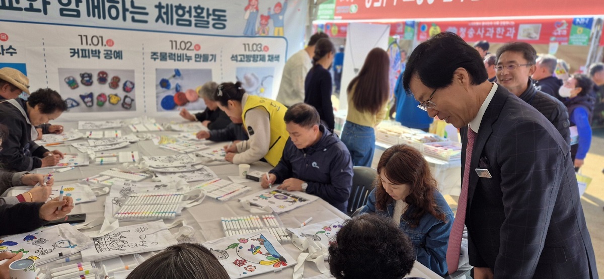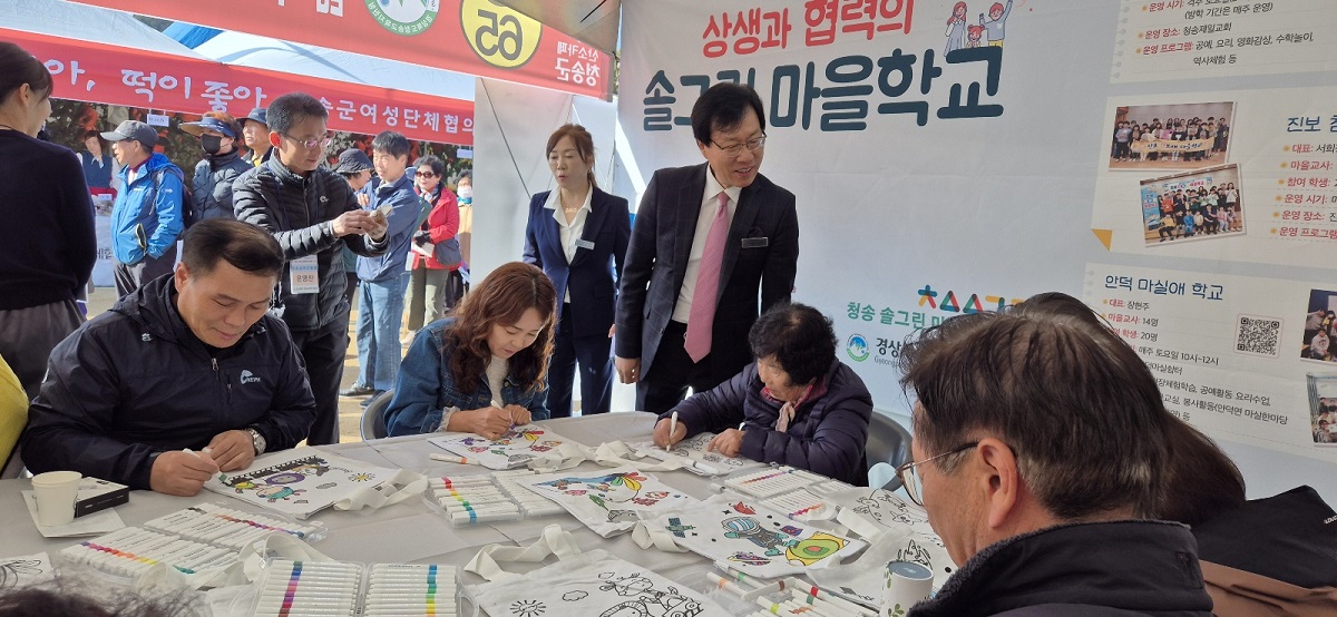 ▢ 축제 기간 동안 청송 솔그린 미래교육지구 내 마을학교에서 강사로 나서 ‘에코가방 만들기’, ‘커피박 공예’, ‘석고 방향제 채색하기’ 등 다양한 테마의 체험 부스를 운영하였으며, 룰렛 돌기기를 통한 이벤트 행사도 진행하였다.