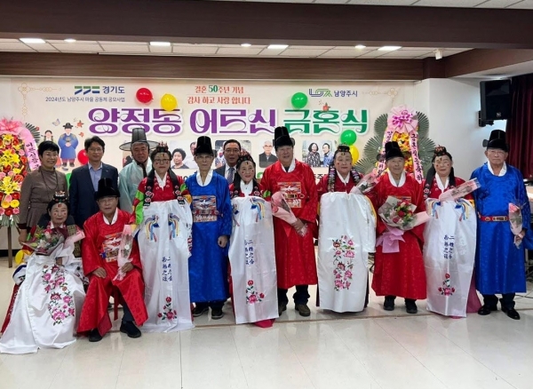 이번 금혼식은 양정동 주민자치위원회와 왕숙2지구 어울림 주민공동체가 공동으로 주관했으며 오랫동안 삶의 희로애락을 함께 해 온 5쌍의 부부들을 위한 전통 혼례 형식으로 진행됐다.