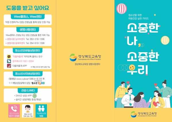 이와 함께 청소년 모바일 상담센터와 Wee 클래스, 생명사랑센터 등 상담 기관의 연락처를 수록해 학생들이 필요할 때 즉시 도움을 받을 수 있도록 했다.