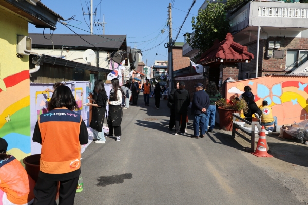 [금요저널] 사)동두천시 자원봉사센터는 2일 제20기 한마음 가족봉사단, 동두천여자중학교 미술동아리 학생 등 70명이 참여해 생연2동 12통 태극기 마을에 벽화 그리기 활동을 실시했다.