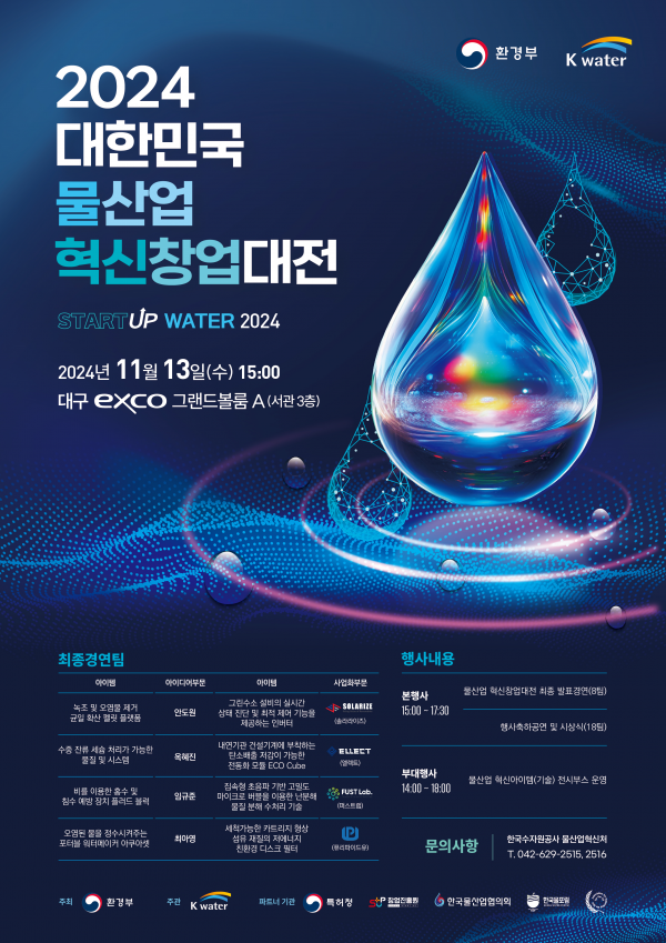 아울러 이날 시상식과 함께 물산업 혁신기술·제품 전시회도 선보인다.