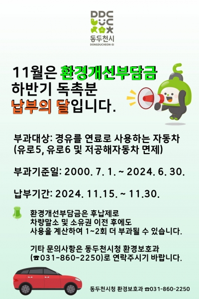 동두천시, 2024년 11월 환경개선부담금 체납 정리의 달 운영