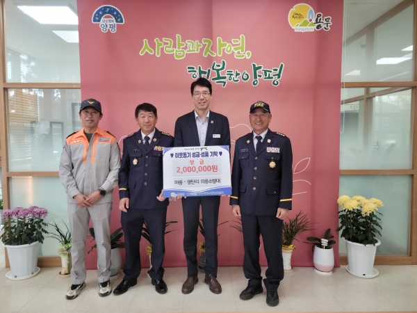 [금요저널] 양평군 용문면 마룡리·광탄리 의용소방대는 13일 지역 내 소외된 이웃을 위해 가치 있게 써달라며 용문면사무소에 기부금 200만원을 전달했다.