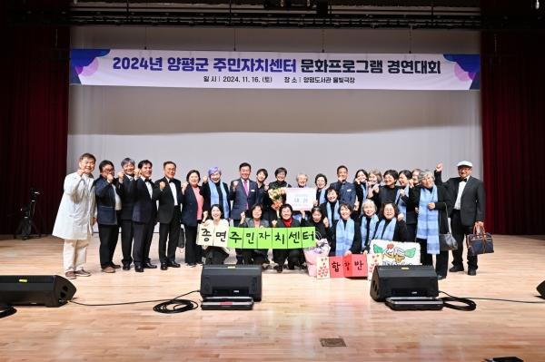 전진선 양평군수는 “이번 경연대회는 주민들이 함께 모여 문화적 재능을 나누며 지역사회의 유대감을 강화하는 소중한 자리였다”며 “참가자 모두 열정적으로 대회에 임해 주셔서 감사드리며 앞으로 주민자치 활성화와 더불어 주민과 함께하는 매력양평을 만들도록 더욱 노력하겠다”고 말했다.