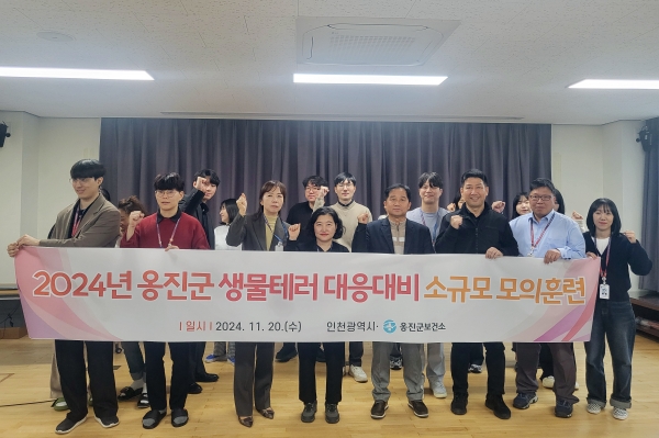 [금요저널] 옹진군은 지난 20일 보건소 2층 대강당에서 경찰·소방 등 유관 기관과 함께 ‘2024년 생물테러 대응·대비 소규모 모의훈련’을 실시했다고 밝혔다.