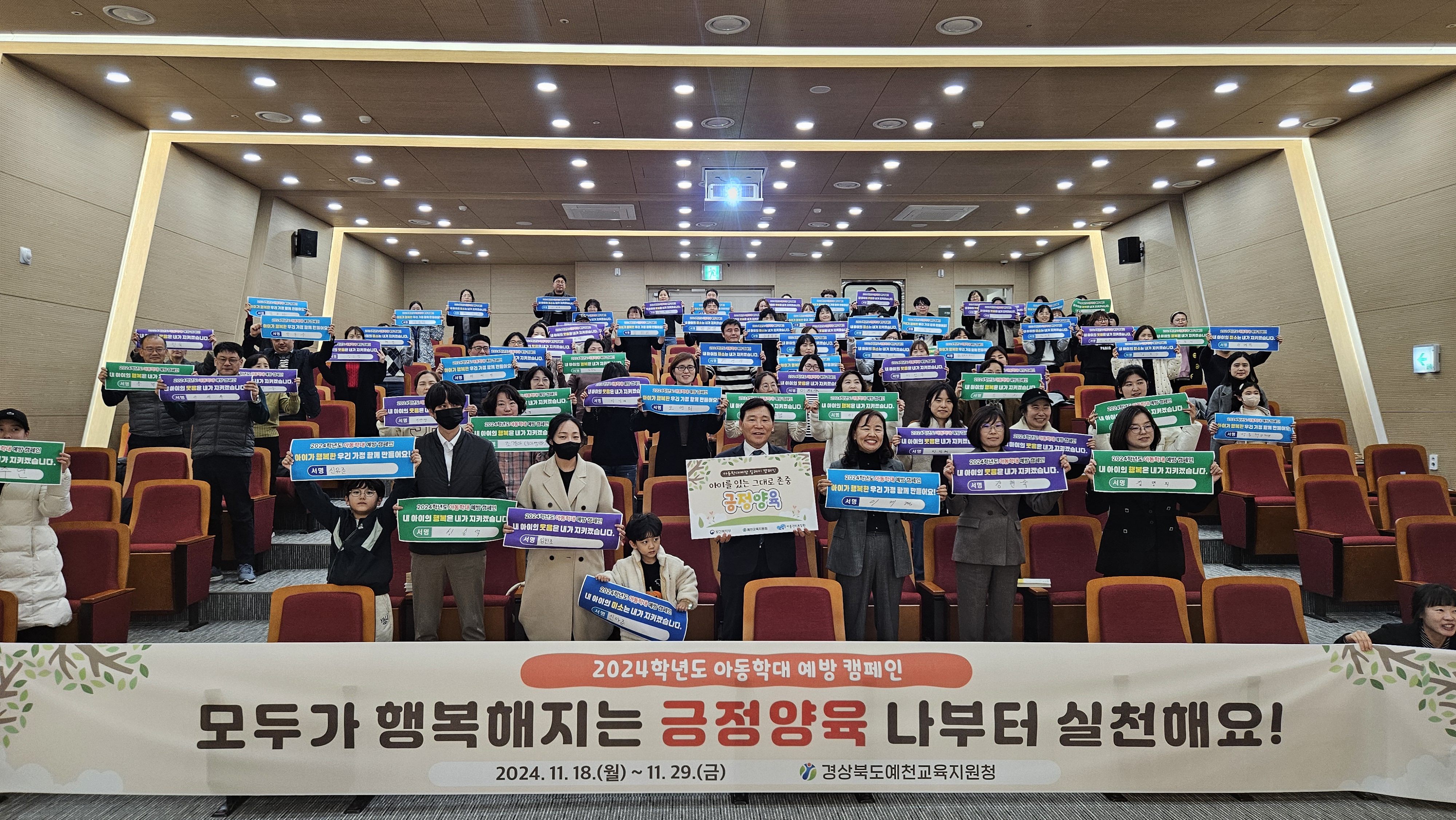 예천교육지원청(교육장 이창희)은 2024년 11월 19일(화) 관내 학부모와 교육공동체가 함께 참여하는 ‘아동학대 예방 학부모 캠페인’을 성공적으로 개최하였다.