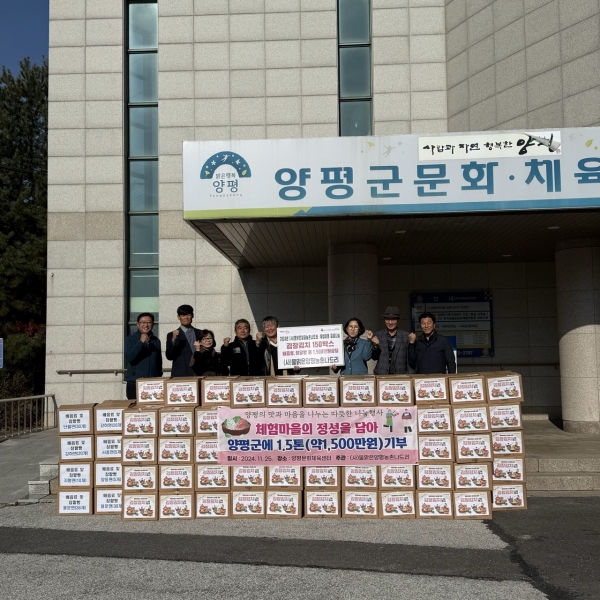 [금요저널] 양평군은 25일 사단법인 물맑은양평농촌나드리와 관내 체험마을이 합심해 이웃돕기를 위한 김치 150박스를 기부하는 뜻깊은 나눔 행사를 개최했다고 밝혔다.