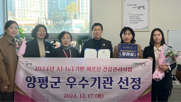 [금요저널] 양평군은 17일 진행된 한국사회보장정보원 주관 ‘2024년 AI·IoT기반 어르신 건강관리사업 간담회’에서 ‘어르신 건강관리 모바일 보건소시스템 활용 우수기관’ 으로 선정되어 한국사회보장정보원장 장려상을 수상했다고 밝혔다.