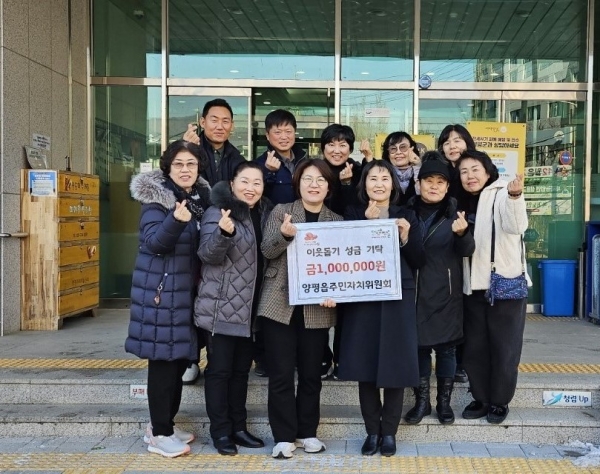 [금요저널] 양평군 양평읍은 지난 24일 양평읍 주민자치위원회로부터 연말연시를 맞아 지역사회의 어려운 이웃을 위해 사용해 달라며 100만원을 전달받았다.