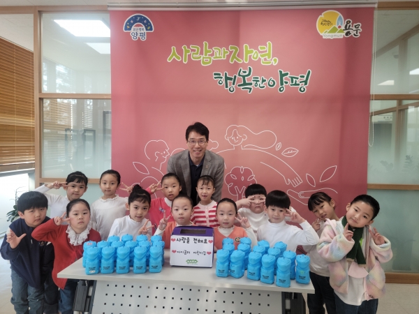 [금요저널] 양평군 용문면 소재의 아이꿈터어린이집 원아들이 어려운 이웃을 돕기 위해 고사리손으로 모은 성금을 24일 용문면사무소에 기탁했다.
