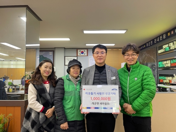 이어 개군면 주민자치센터 노래교실반이 30만원을, 개군면 새마을회와 개군교회가 각각 100만원을, 개군면 탁구동호회가 100만원을 기부하는 등 선행의 바통을 이어갔다.