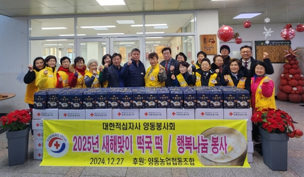 정창업 양동면장은 “추운 날씨에도 매년 새해를 맞아 복지 취약계층을 위해 따뜻한 나눔을 실천해 주시는 적십자 봉사회에 진심으로 감사를 드리며 관내 어려운 이웃들에게 웃음 많은 행복한 양동면이 될 수 있도록 최선을 다하겠다”고 말했다.